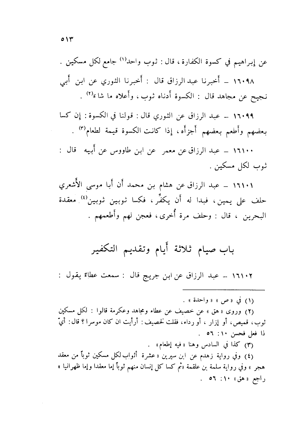 16100 - عَنْ مَعْمَرٍ، عَنِ ابْنِ طَاوُسٍ، عَنْ أَبِيهِ قَالَ: «§ثَوْبٌ لِكُلِّ مِسْكِينٍ»