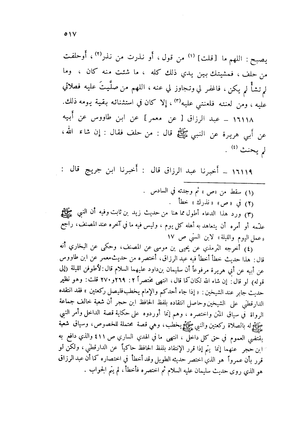 16119 - عَبْدُ الرَّزَّاقِ قَالَ: أَخْبَرَنَا ابْنُ جُرَيْجٍ قَالَ: أَخْبَرَنِي ابْنُ طَاوُسٍ، عَنْ أَبِيهِ قَالَ: «§مَنِ اسْتَثْنَى لَمْ يَحْنَثْ، وَلَهُ الثُّنْيَا مَا لَمْ يَقُمْ مِنْ مَجْلِسِهِ»