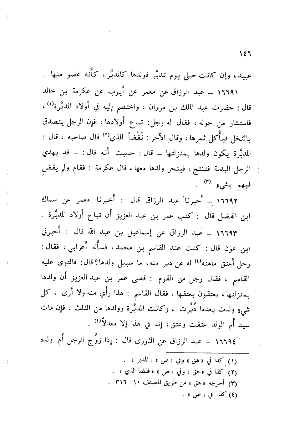 16693 - عَنْ إِسْمَاعِيلَ بْنِ عَبْدِ اللَّهِ قَالَ: أَخْبَرَنِي ابْنُ عَوْنٍ قَالَ: كُنْتُ عِنْدَ الْقَاسِمِ بْنِ مُحَمَّدٍ فَسَأَلَهُ أَعْرَابِيٌّ فَقَالَ: رَجُلٌ أَعْتَقَ مَاهَتَهُ لَهُ عَنْ دُبُرٍ مِنْهُ، مَا سَبِيلُ وَلَدِهَا؟ قَالَ: فَالْتَوَى عَلَيْهِ الْقَاسِمُ، فَقَالَ رَجُلٌ مِنَ الْقَوْمِ: §قَضَى عُمَرُ بْنُ عَبْدِ الْعَزِيزِ أَنَّ وَلَدَهَا بِمَنْزِلَتِهَا يُعْتَقُونَ بِعِتْقِهَا فَقَالَ الْقَاسِمُ: «هَذَا رَأْيٌ مِنْهُ وَلَا أَرَى كُلَّ شَيْءٍ وَلَدَتْ بَعْدَمَا دَبَّرَتْ وَكَانَتِ الْمُدَبَّرَةُ وَوَلَدُهَا مِنَ الثُّلُثِ فَإِنْ مَاتَ سَيِّدُ أُمِّ الْوَلَدِ عَتَقَتْ وَعَتَقَ إِنَّهُ فِي هَذَا إِلَّا مُعْدَلًا»