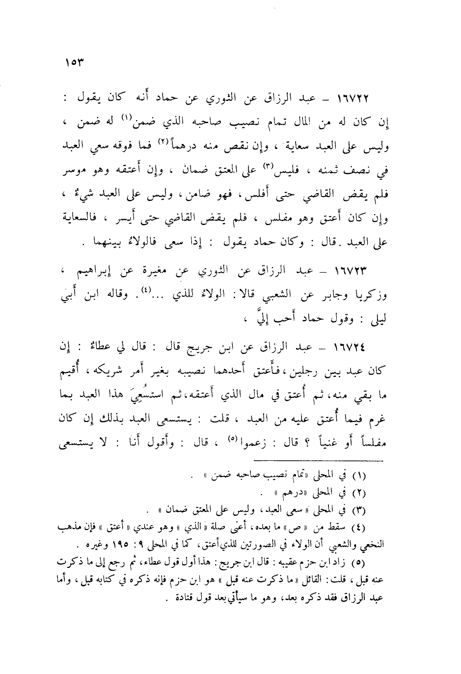 16725 - عَنْ مَعْمَرٍ، عَنْ قَتَادَةَ وَقَالَ: «§لَا يَتْبَعُ السَّيِّدُ الْعَبْدَ فِيمَا غُرِمَ عَلَيْهِ فِي عِتَاقِهِ»
