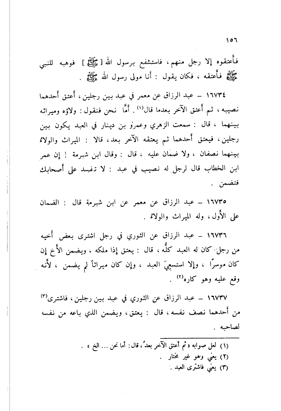 16737 - عَنِ الثَّوْرِيِّ فِي عَبْدٍ بَيْنَ رَجُلَيْنِ فَاشْتَرَى مِنْ أَحَدِهِمَا نِصْفَ نَفْسِهِ قَالَ: «§يُعْتَقُ وَيَضْمَنُ الَّذِي بَاعَهُ مِنْ نَفْسِهِ لِصَاحِبِهِ»