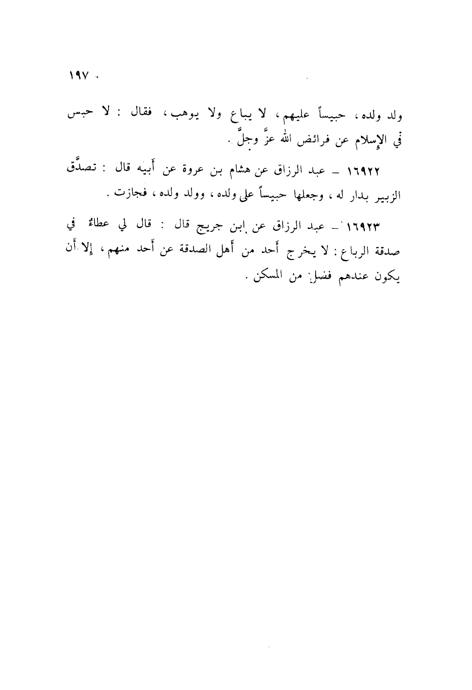 16923 - عَنِ ابْنِ جُرَيْجٍ قَالَ: قَالَ لِي عَطَاءٌ: «§فِي صَدَقَةِ الرِّبَاعِ لَا يَخْرُجُ أَحَدٌ مِنْ أَهْلِ الصَّدَقَةِ عَنْ أَحَدٍ مِنْهُمْ إِلَّا أَنْ يَكُونَ عِنْدَهُمْ فَضْلٌ مِنَ الْمَسْكَنِ»