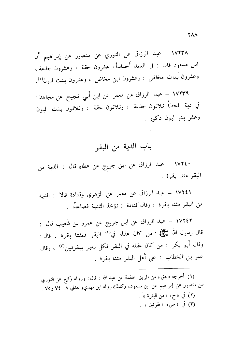 17240 - عَنِ ابْنِ جُرَيْجٍ، عَنْ عَطَاءٍ قَالَ: «§الدِّيَةُ مِنَ الْبَقَرِ مِائَتَا بَقَرَةٍ»