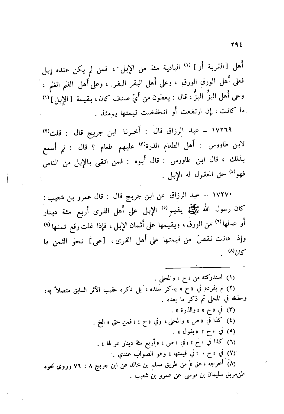 17270 - عَنِ ابْنِ جُرَيْجٍ قَالَ: قَالَ عَمْرُو بْنُ شُعَيْبٍ «كَانَ رَسُولُ اللَّهِ صَلَّى اللهُ عَلَيْهِ وَسَلَّمَ §يُقِيمُ الْإِبِلَ عَلَى أَهْلِ الْقُرَى أَرْبَعَمِائَةِ دِينَارٍ أَوْ عَدْلَهَا مِنَ الْوَرَقِ، وَيُقِيمُهَا عَلَى أَثْمَانِ الْإِبِلِ، فَإِذَا غَلَتْ رَفَعَ ثَمَنَهَا، وَإِذَا هَانَتْ نَقُصَ مِنَ قِيمَتِهَا عَلَى أَهْلِ الْقُرَى عَلَى نَحْوِ الثَّمَنِ مَا كَانَ»
