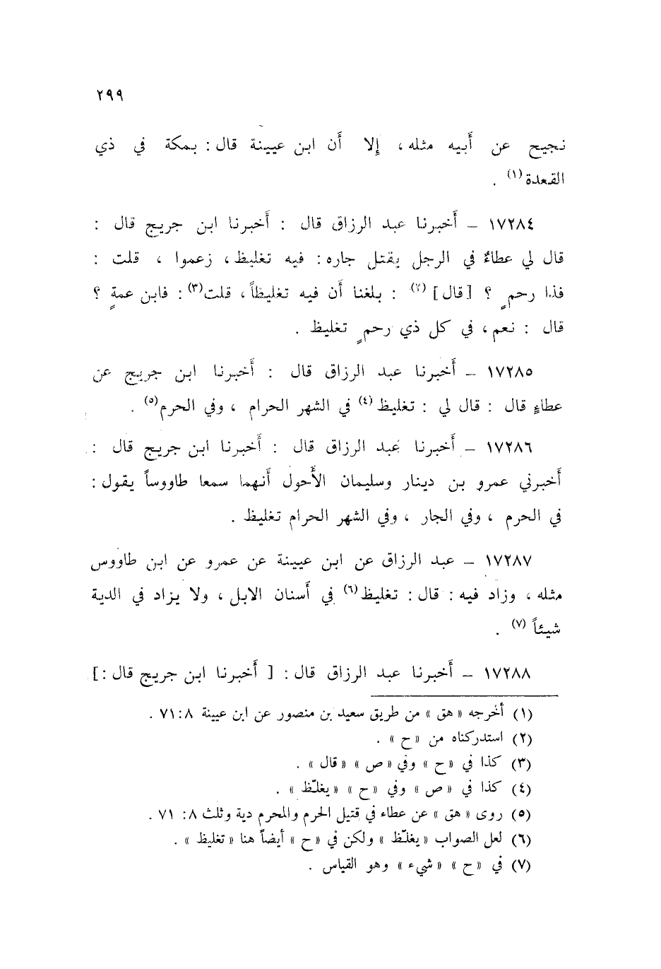17285 - عَبْدُ الرَّزَّاقِ قَالَ: أَخْبَرَنَا ابْنُ جُرَيْجٍ، عَنْ عَطَاءٍ قَالَ: قَالَ لِي: «§تَغْلِيظٌ فِي الشَّهْرِ الْحَرَامِ وَفِي الْحَرَمِ»