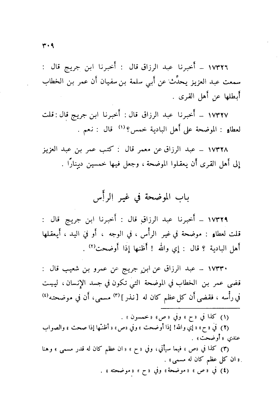 17328 - عَنْ مَعْمَرٍ قَالَ: «كَتَبَ عُمَرُ بْنُ عَبْدِ الْعَزِيزِ إِلَى §أَهْلِ الْقُرَى أَنْ يَعْقِلُوا الْمُوضِحَةَ، وَجَعَلَ فِيهَا خَمْسِينَ دِينَارًا»