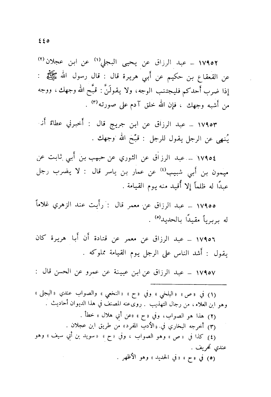 17955 - عَنْ مَعْمَرٍ قَالَ: §رَأَيْتُ عِنْدَ الزُّهْرِيِّ غُلَامًا لَهُ بَرْبَرِيًّا مُقَيَّدًا بِالْحَدِيدِ "