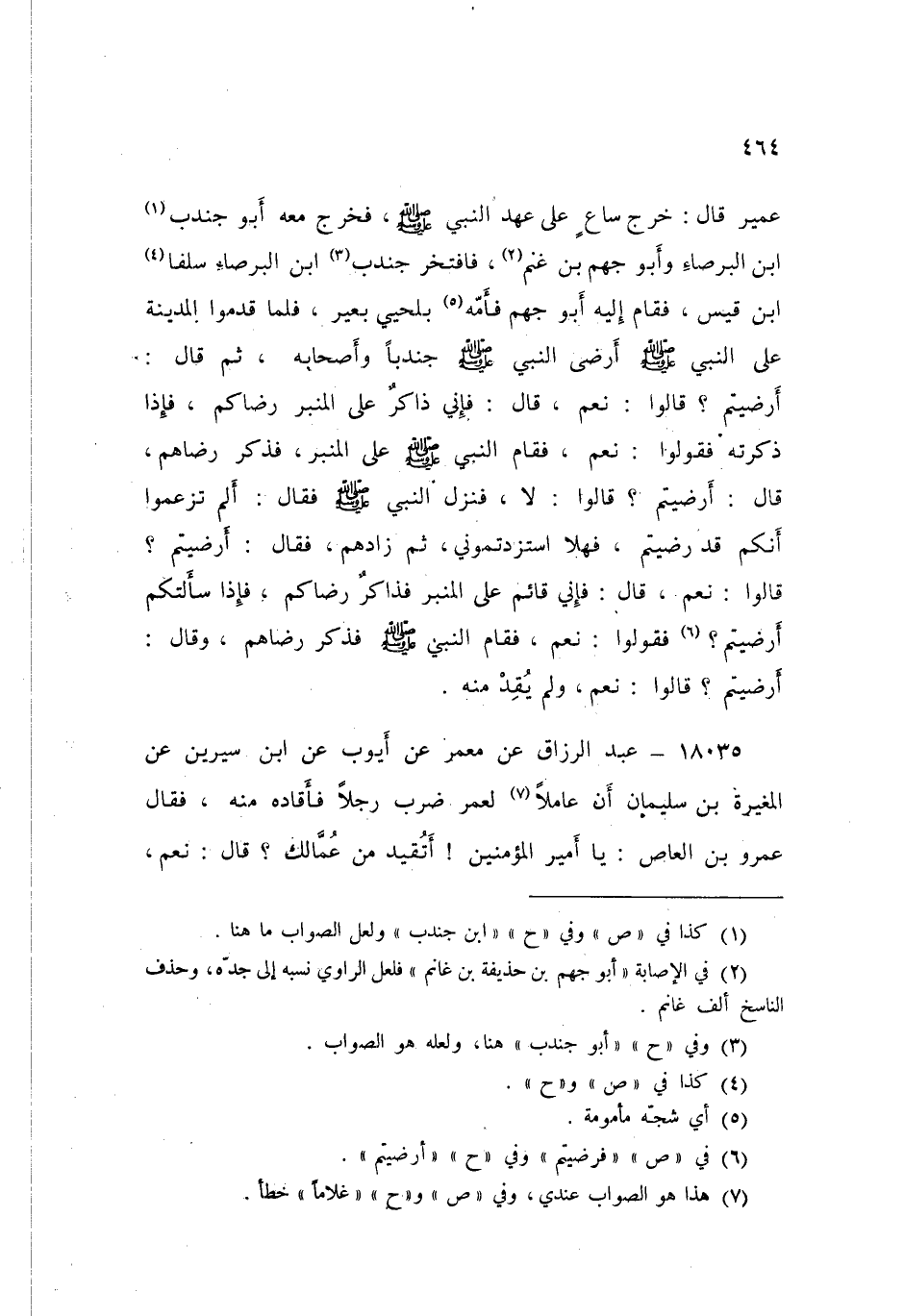 18035 - عَنْ مَعْمَرٍ، عَنْ أَيُّوبَ، عَنِ ابْنِ سِيرِينَ، عَنِ الْمُغِيرَةِ بْنِ سُلَيْمَانَ، أَنَّ عَامِلًا لِعُمَرَ ضَرَبَ رَجُلًا فَأَقَادَهُ مِنْهُ، فَقَالَ عَمْرُو بْنُ الْعَاصِ: «يَا أَمِيرَ الْمُؤْمِنِينَ §أَتُقَيِّدُ مِنْ عُمَّالِكَ» قَالَ: نَعَمْ قَالَ: إِذًا لَا نَعْمَلُ لَكَ قَالَ: وَإِنْ لَمْ تَعْمَلُوا قَالَ: أَوْ تُرْضِيَهِ قَالَ: أَوْ أَرَضِيهِ "