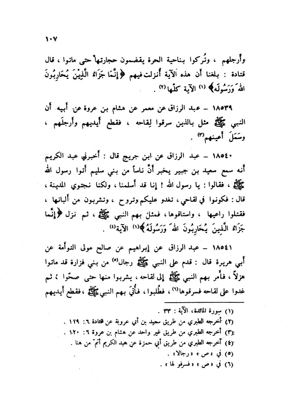 18540 - عَنِ ابْنِ جُرَيْجٍ , قَالَ: أَخْبَرَنِي عَبْدُ الْكَرِيمِ , أَنَّهُ: سَمِعَ سَعِيدَ بْنَ جُبَيْرٍ , يُخْبِرُ أَنَّ نَاسًا مِنْ بَنِي سُلَيْمٍ أَتَوْا رَسُولَ اللَّهِ صَلَّى اللهُ عَلَيْهِ وَسَلَّمَ فَقَالُوا: يَا رَسُولَ اللَّهِ , إِنَّا قَدْ أَسْلَمْنَا , وَلَكِنَّا نَجْتَوِي الْمَدِينَةَ قَالَ: " §فَكُونُوا فِي لِقَاحِي تَغْدُو عَلَيْكُمْ , وَتَرُوحُ , وَتَشْرَبُونَ مِنْ أَلْبَانِهَا فَقَتَلُوا رَاعِيَهَا , وَاسْتَاقُوهَا , فَمَثَّلَ بِهِمُ النَّبِيُّ صَلَّى اللهُ عَلَيْهِ وَسَلَّمَ، ثُمَّ نَزَلَ {إِنَّمَا جَزَاءُ الَّذِينَ يُحَارِبُونَ اللَّهَ وَرَسُولَهُ} [المائدة: 33] " الْآيَةَ