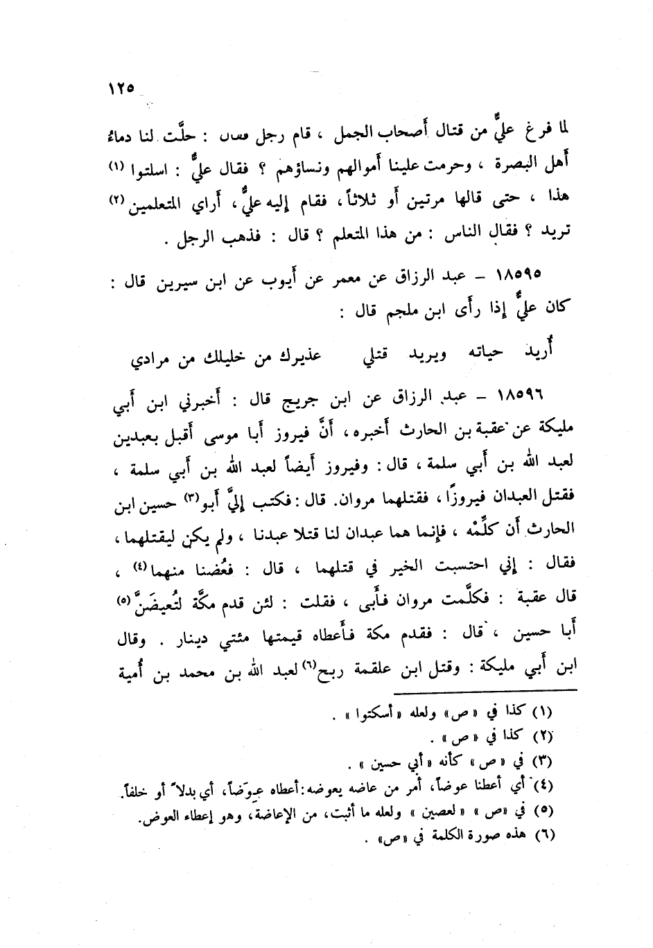 18596 - عَنِ ابْنِ جُرَيْجٍ , قَالَ: أَخْبَرَنِي ابْنُ أَبِي مُلَيْكَةَ , عَنْ عُقْبَةَ بْنِ الْحَارِثِ , أَخْبَرَه: " أَنَّ فَيْرُوزَ أَبَا مُوسَى أَقْبَلَ بِعَبْدَيْنِ لِعَبْدِ اللَّهِ بْنِ أَبِي سَلَمَةَ قَالَ: وَفَيْرُوزُ أَيْضًا لِعَبْدِ اللَّهِ بْنِ أَبِي سَلَمَةَ فَقَتَلَ الْعَبْدَانِ فَيْرُوزَ فَقَتَلَهُمَا مَرْوَانُ قَالَ: فَكَتَبَ إِلَيَّ أَبُو حُسَيْنِ بْنُ الْحَارِثِ , أَنْ كَلِّمْهُ فَإِنَّمَا هُمَا عَبْدَانِ لَنَا قَتَلًا عَبْدَنَا , وَلَمْ يَكُنْ لِيَقْتُلَهُمَا فَقَالَ: إِنِّي §احْتَسَبْتُ الْخَيْرَ فِي قَتْلِهِمَا , قَالَ: فَعُضْنَا مِنْهُمَا , قَالَ عُقْبَةُ: فَكَلَّمَتُ مَرْوَانَ فَأَبَى فَقُلْتُ: لَئِنْ قَدِمَ مَكَّةَ لَتُعِيضَنَّ أَبَا حُسَيْنٍ , قَالَ: فَقَدِمَ مَكَّةَ فَأَعْطَاهُ قِيمَتَهَا مِائَتَيْ دِينَارٍ , وَقَالَ ابْنُ أَبِي مُلَيْكَةَ: وَقَتَلَ ابْنُ عَلْقَمَةَ رِبْحٌ لِعَبْدِ اللَّهِ بْنِ مُحَمَّدِ بْنِ أُمَيَّةَ -[126]- غُلَامًا لِعَبْدِ الْمَلِكِ بْنِ مُحَمَّدٍ , فَقَتَلَهُمْ نَافِعُ بْنُ عَلْقَمَةَ فَأُخْبِرَ بِعِوَضِ مَرْوَانَ فِي غُلَامَيِ ابْنَيْ أَخِيهِ فَكَتَبَ بِذَلِكَ إِلَى عَبْدِ الْمَلِكِ أَنِ انْظُرْ مَا فَعَلَ مَرْوَانُ فَافْعَلْهُ , عَضَّدَهُ قَالَ: فَفَعَلَ فَعَاضَ عَبْدَ الْمَلِكِ مِنْ غِلْمَتِهِ "
