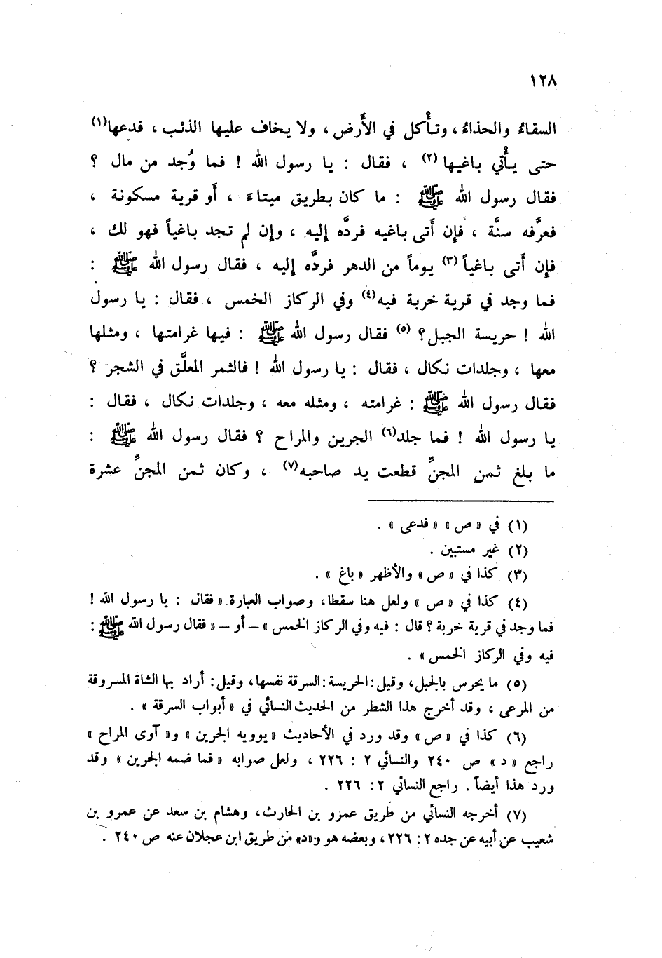 فَقَالَ: يَا رَسُولَ اللَّهِ حَرِيسَةُ الْجَبَلِ؟ فَقَالَ رَسُولُ اللَّهِ صَلَّى اللهُ عَلَيْهِ وَسَلَّمَ: «§فِيهَا غَرَامَتُهَا , وَمِثْلُهَا مَعَهَا , وَجَلَدَاتُ نَكَالٍ»