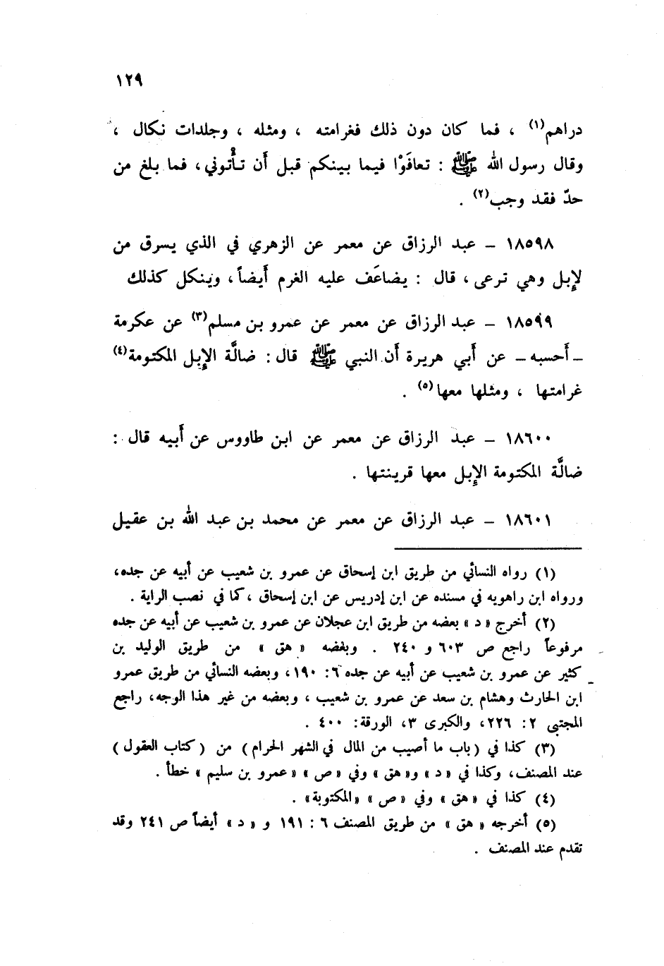 18599 - عَنْ مَعْمَرٍ , عَنْ عَمْرِو بْنِ مُسْلِمٍ , عَنْ عِكْرِمَةَ , - أَحْسَبُهُ - عَنِ أَبِي هُرَيْرَةَ , أَنَّ النَّبِيَّ صَلَّى اللهُ عَلَيْهِ وَسَلَّمَ قَالَ: «§ضَالَّةُ الْإِبِلِ الْمَكْتُومَةِ غَرَامَتُهَا وَمِثْلُهَا مَعَهَا»