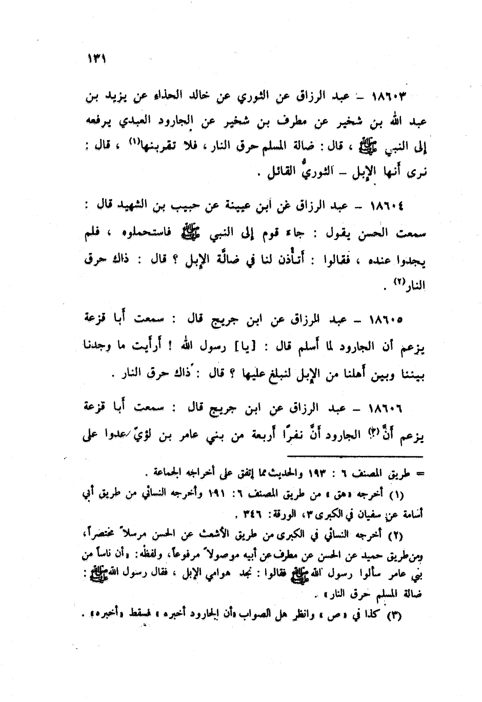 18605 - عَنِ ابْنِ جُرَيْجٍ , قَالَ: سَمِعْتُ أَبَا قَزَعَةَ يَزْعُمُ أَنَّ الْجَارُودَ لَمَّا أَسْلَمَ قَالَ: يَا رَسُولَ اللَّهِ أَرَأَيْتَ مَا وَجَدْنَا بَيْنَنَا وَبَيْنَ أَهْلِنَا مِنَ الْإِبِلِ لَنَبْلُغُ عَلَيْهَا؟ قَالَ: «§ذَاكَ حَرَقُ النَّارِ»