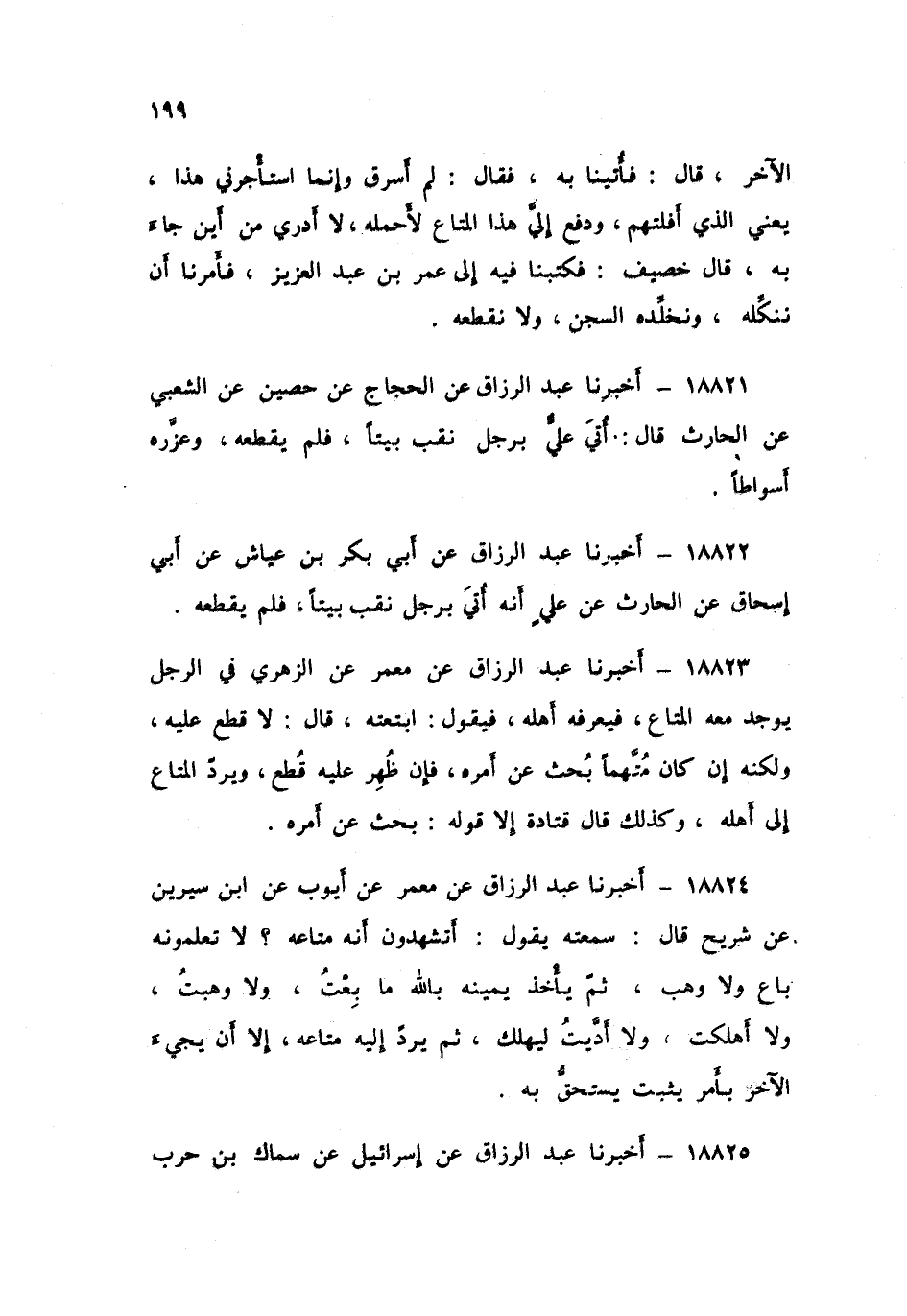 18822 - أَخْبَرَنَا عَبْدُ الرَّزَّاقِ، عَنْ أَبِي بَكْرِ بْنِ عَيَّاشٍ , عَنْ أَبِي إِسْحَاقَ , عَنِ الْحَارِثِ , عَنْ عَلِيٍّ: «أَنَّهُ §أُتِيَ بِرَجُلٍ نَقَبَ بَيْتًا , فَلَمْ يَقْطَعْهُ»