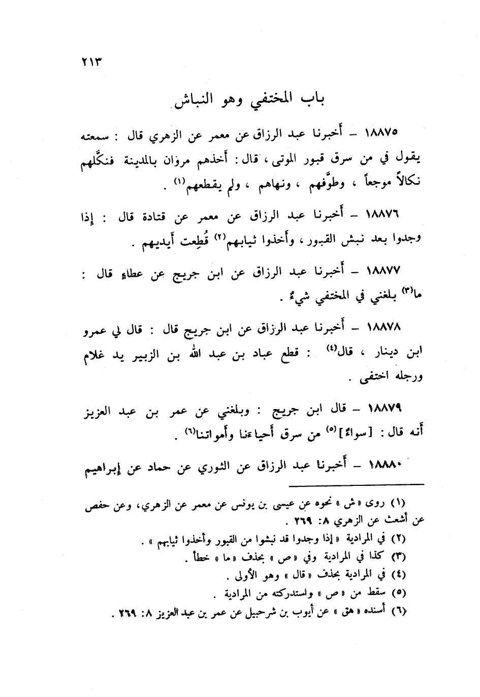 18880 - أَخْبَرَنَا عَبْدُ الرَّزَّاقِ، عَنِ الثَّوْرِيِّ , عَنْ حَمَّادٍ , عَنْ إِبْرَاهِيمَ , قَالَ: «§إِذَا سَرَقَ النَّبَّاشُ مَا يُقْطَعُ فِي مِثْلِهِ قُطِعَ»
