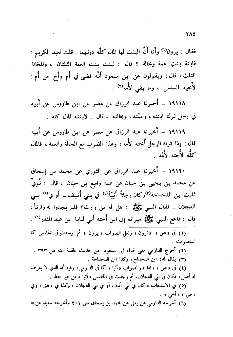 19120 - أَخْبَرَنَا عَبْدُ الرَّزَّاقِ، عَنِ الثَّوْرِيِّ , عَنْ مُحَمَّدِ بْنِ إِسْحَاقَ , عَنْ مُحَمَّدِ بْنِ يَحْيَى بْنِ حَبَّانَ , عَنْ عَمِّهِ وَاسِعِ بْنِ حَبَّانَ , قَالَ: تُوُفِّيَ ثَابِتُ بْنُ الدَّحْدَاحَةِ وَكَانَ رَجُلًا أَتِيًا فِي بَنِي أُنَيفٍ أَوْ فِي بَنِي الْعَجْلَانِ فَقَالَ النَّبِيُّ صَلَّى اللهُ عَلَيْهِ وَسَلَّمَ: «§هَلْ لَهُ مِنْ وَارِثٍ؟» , فَلَمْ يَجِدُوا لَهُ وَارِثًا , قَالَ: «فَدَفَعَ النَّبِيُّ صَلَّى اللهُ عَلَيْهِ وَسَلَّمَ مِيرَاثَهُ إِلَى ابْنِ أُخْتِهِ أَبِي لُبَابَةَ بْنِ عَبْدِ الْمُنْذِرِ»