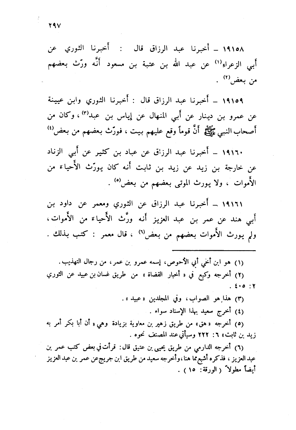 19161 - أَخْبَرَنَا عَبْدُ الرَّزَّاقِ، عَنِ الثَّوْرِيِّ , وَمَعْمَرٍ , عَنْ دَاوُدَ بْنِ أَبِي هِنْدٍ , عَنْ عُمَرَ بْنِ عَبْدِ الْعَزِيزِ: «أَنَّهُ §وَرَّثَ الْأَحْيَاءَ مِنَ الْأَمْوَاتِ , وَلَمْ يُوَرِّثِ الْأَمْوَاتَ بَعْضَهُمْ مِنْ بَعْضٍ» , قَالَ مَعْمَرٌ: كَتَبَ بِذَلِكَ , أَخْبَرَنَا