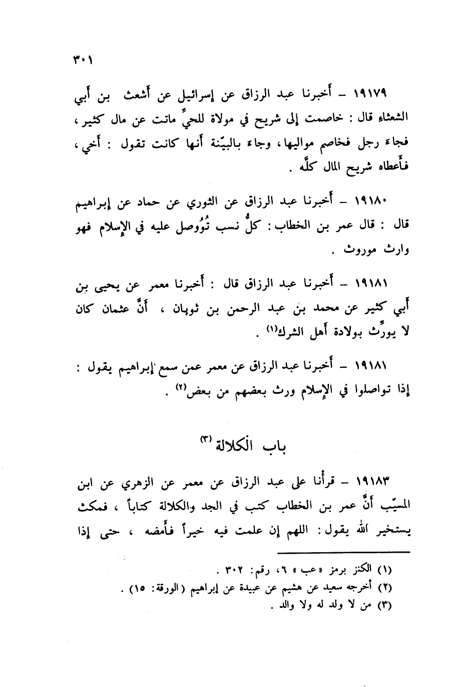 19180 - أَخْبَرَنَا عَبْدُ الرَّزَّاقِ، عَنِ الثَّوْرِيِّ , عَنْ حَمَّادٍ , عَنْ إِبْرَاهِيمَ , قَالَ: قَالَ عُمَرُ بْنُ الْخَطَّابِ: «§كُلُّ نَسَبٍ تُوُصِلَ عَلَيْهِ فِي الْإِسْلَامِ , فَهُوَ وَارِثٌ مَوْرُوثٌ»