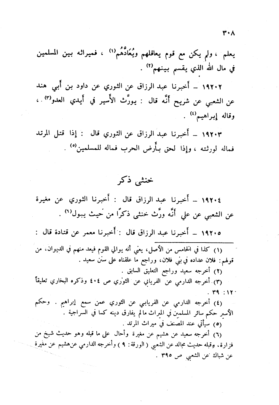 19204 - عَبْدُ الرَّزَّاقِ، أَخْبَرَنَا الثَّوْرِيُّ , عَنْ مُغِيرَةَ , عَنِ الشَّعْبِيِّ , عَنْ عَلِي: «أَنَّهُ §وَرَّثَ خُنْثَى ذَكَرًا مِنْ حَيْثُ يَبُولُ»