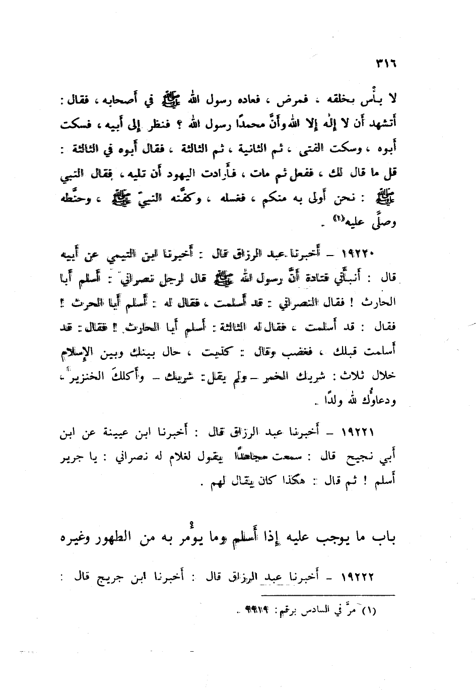 19221 - عَبْدُ الرَّزَّاقِ أَخْبَرَنَا ابْنُ عُيَيْنَةَ , عَنِ ابْنِ أَبِي نَجِيحٍ , قَالَ: سَمِعْتُ مُجَاهِدًا يَقُولُ لِغُلَامٍ لَهُ نَصْرَانِيٍّ: «§يَا جَرِيرُ، أَسْلِمْ» , ثُمَّ قَالَ: «هَكَذَا كَانَ يُقَالُ لَهُمْ»