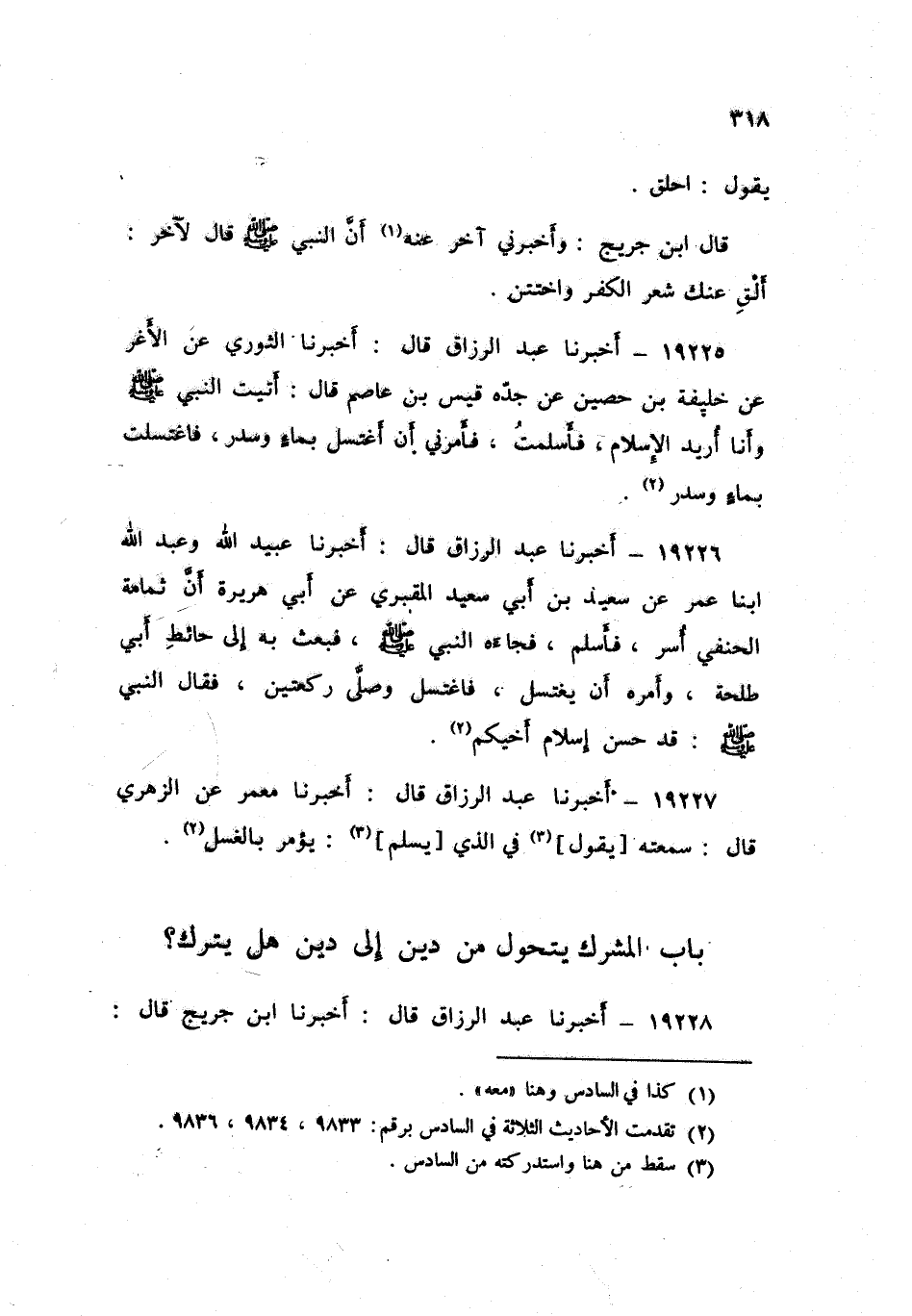 19227 - عَبْدُ الرَّزَّاقِ، أَخْبَرَنَا مَعْمَرٌ , عَنِ الزُّهْرِيِّ , قَالَ: سَمِعْتُهُ يَقُولُ: «فِي §الَّذِي يُسْلِمُ يُؤْمَرُ بِالْغُسْلِ»
