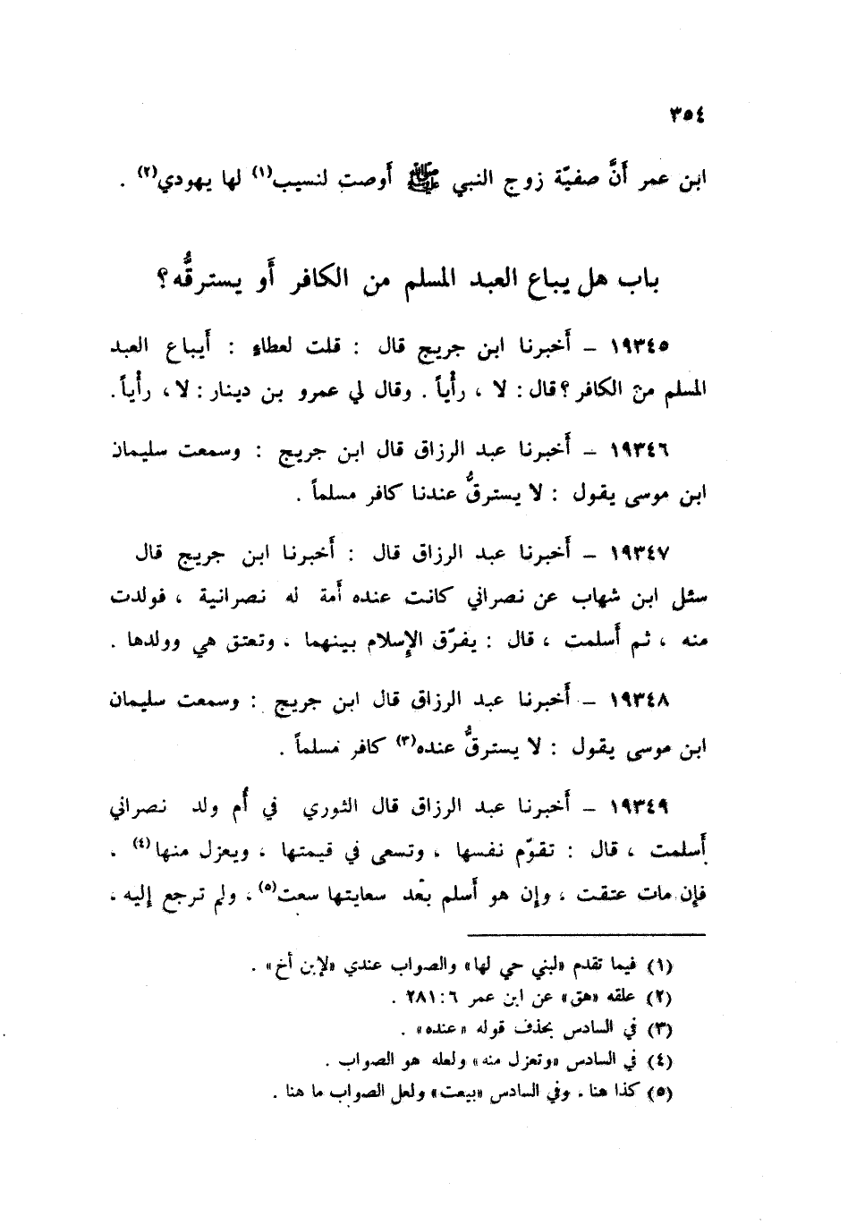19346 - عَبْدُ الرَّزَّاقِ قال: ابْنُ جُرَيْجٍ , وَسَمِعْتُ سُلَيْمَانَ بْنَ مُوسَى , يَقُولُ: «§لَا يَسْتَرِقُّ عِنْدَنَا كَافِرٌ مُسْلِمًا»