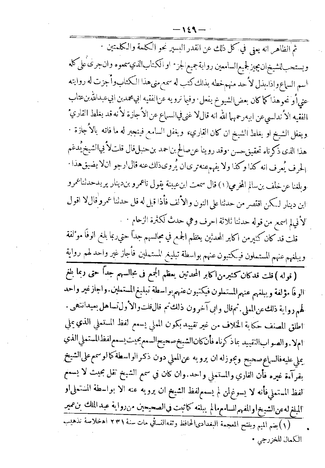 ثُمَّ وَجَدْتُ عَنْ عَبْدِ الْغَنِيِّ بْنِ سَعِيدٍ الْحَافِظ ِ، عَنْ حَمْزَةَ بْنِ مُحَمَّدٍ الْحَافِظِ بِإِسْنَادِهِ، عَنْ عَبْدِ الرَّحْمَنِ بْنِ مَهْدِيٍّ أَنَّهُ قَالَ: يَا فُلَانُ، يَكْفِيكَ مِنَ الْحَدِيثِ شَمُّهُ. قَالَ عَبْدُ الْغَنِيِّ: قَالَ لَنَا حَمْزَةُ: يَعْنِي إِذَا سُئِلَ عَنْ أَوَّلِ شَيْءٍ عَرَفَهُ، وَلَيْسَ يَعْنِي التَّسْهِيلَ فِي السَّمَاعِ، وَاللَّهُ أَعْلَمُ.
