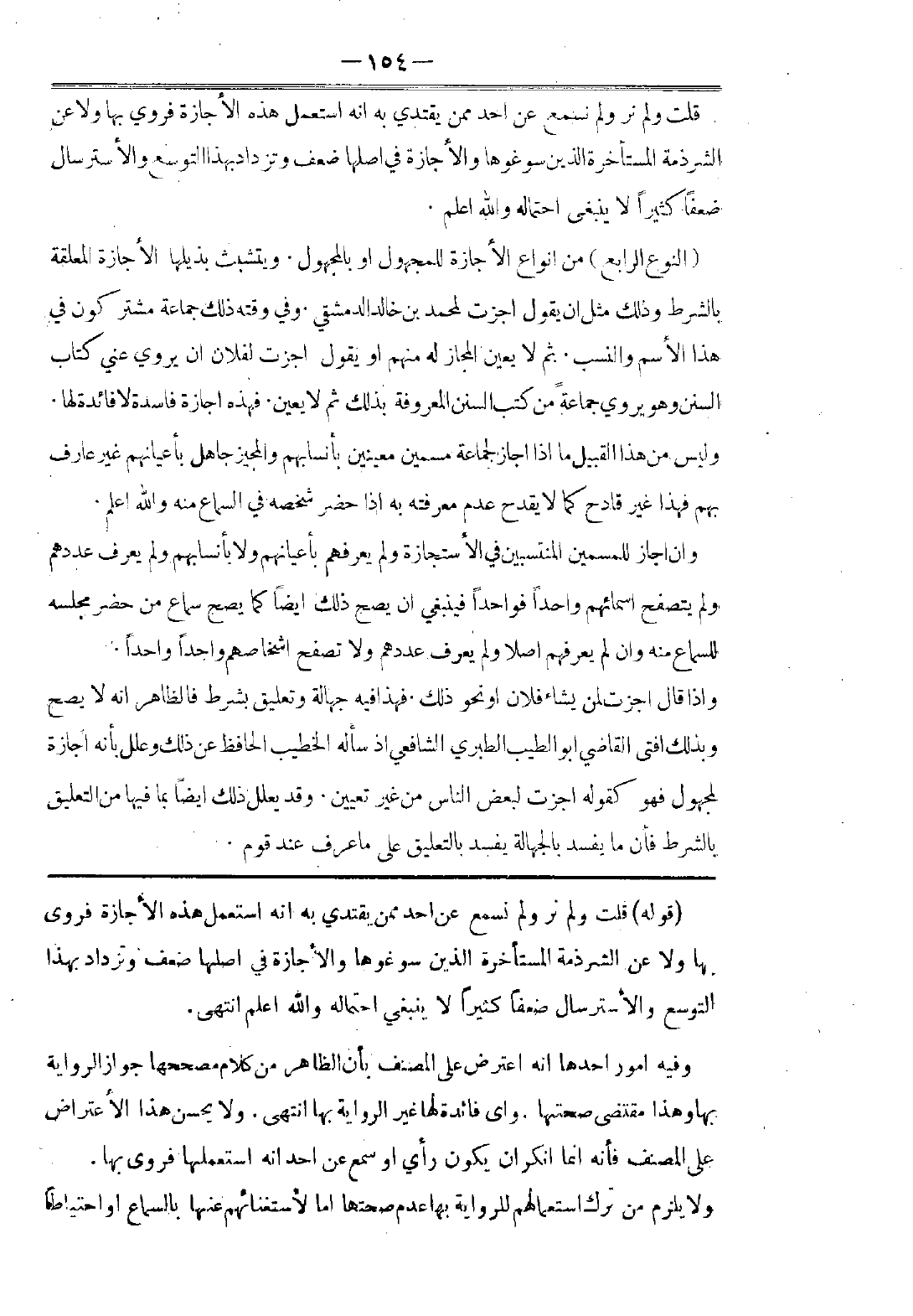 ثُمَّ إِنَّهُ كَمَا تَجُوزُ الرِّوَايَةُ بِالْإِجَازَةِ يَجِبُ الْعَمَلُ بِالْمَرْوِيِّ بِهَا، خِلَافًا لِمَنْ قَالَ مِنْ أَهْلِ الظَّاهِرِ، وَمَنْ تَابَعَهُمْ: إِنَّهُ لَا يَجِبُ الْعَمَلُ بِهِ، وَإِنَّهُ جَارٍ مَجْرَى الْمُرْسَلِ. وَهَذَا بَاطِلٌ، لِأَنَّهُ لَيْسَ فِي الْإِجَازَةِ مَا يَقْدَحُ فِي اتِّصَالِ الْمَنْقُولِ بِهَا، وَفِي الثِّقَةِ بِهِ، وَاللَّهُ أَعْلَمُ.