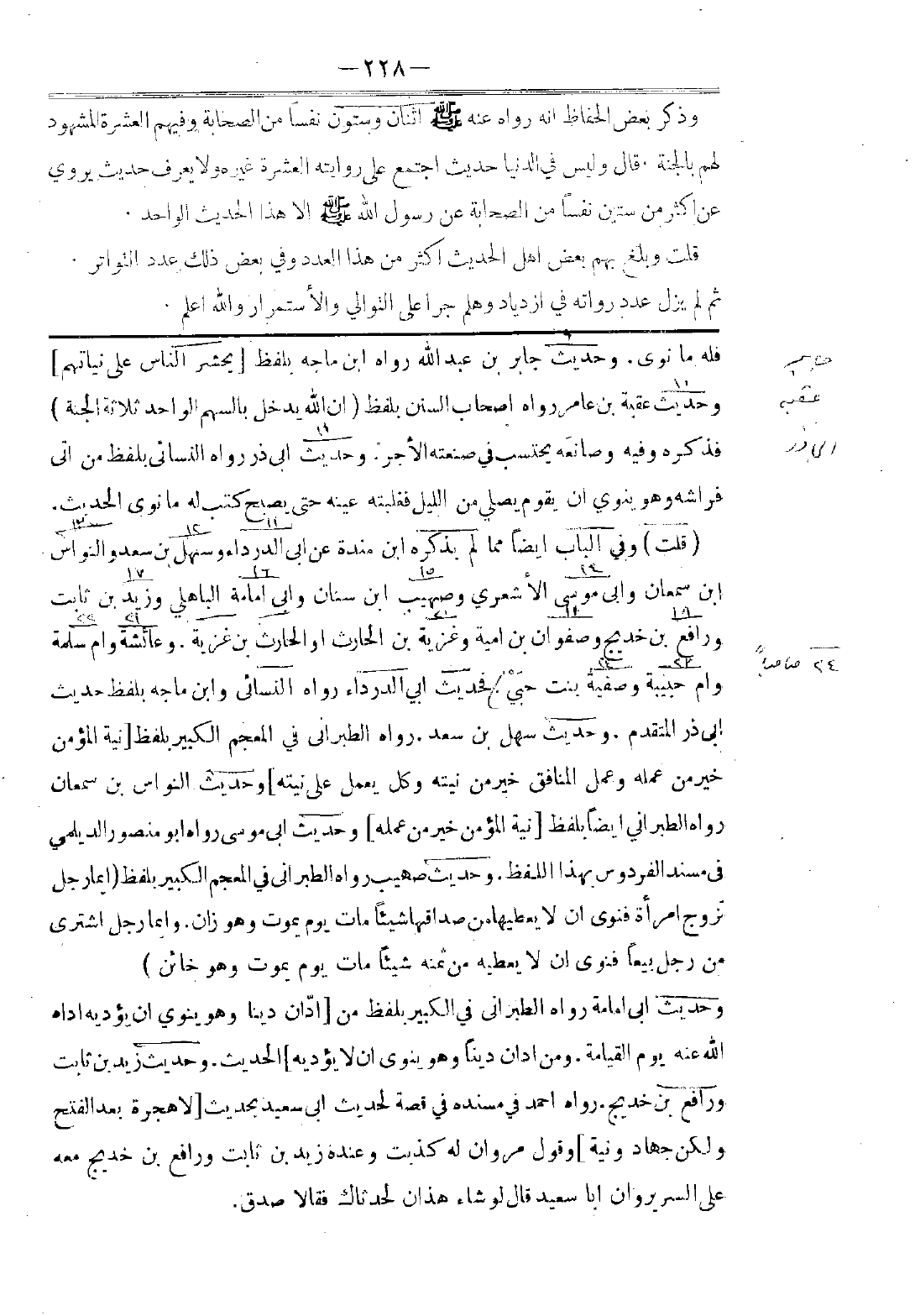 الرَّابِعَ عَشَرَ: النُّسَخُ الْمَشْهُورَةُ الْمُشْتَمِلَةُ عَلَى أَحَادِيثَ بِإِسْنَادٍ وَاحِدٍ، كَنُسْخَةِ " هَمَّامِ بْنِ مُنَبِّهٍ، عَنْ أَبِي هُرَيْرَةَ "، رِوَايَةِ عَبْدِ الرَّزَّاقِ، عَنْ مَعْمَرٍ عَنْهُ، وَنَحْوِهَا مِنَ النُّسَخِ، وَالْأَجْزَاءِ. مِنْهُمْ مَنْ يُجَدِّدُ ذِكْرَ الْإِسْنَادِ فِي أَوَّلِ كُلِّ حَدِيثٍ مِنْهَا، وَيُوجَدُ هَذَا فِي كَثِيرٍ مِنَ الْأُصُولِ الْقَدِيمَةِ، وَذَلِكَ أَحْوَطُ، وَمِنْهُمْ مَنْ يَكْتَفِي بِذِكْرِ الْإِسْنَادِ فِي أَوَّلِهَا عِنْدَ أَوَّلِ حَدِيثٍ مِنْهَا، أَوْ فِي أَوَّلِ كُلِّ مَجْلِسٍ مِنْ مَجَالِسِ سَمَاعِهَا، وَيُدْرِجُ الْبَاقِيَ عَلَيْهِ، وَيَقُولُ فِي كُلِّ حَدِيثٍ بَعْدَهُ: " وَبِالْإِسْنَادِ "، أَوْ " وَبِهِ "، وَذَلِكَ هُوَ الْأَغْلَبُ الْأَكْثَرُ.