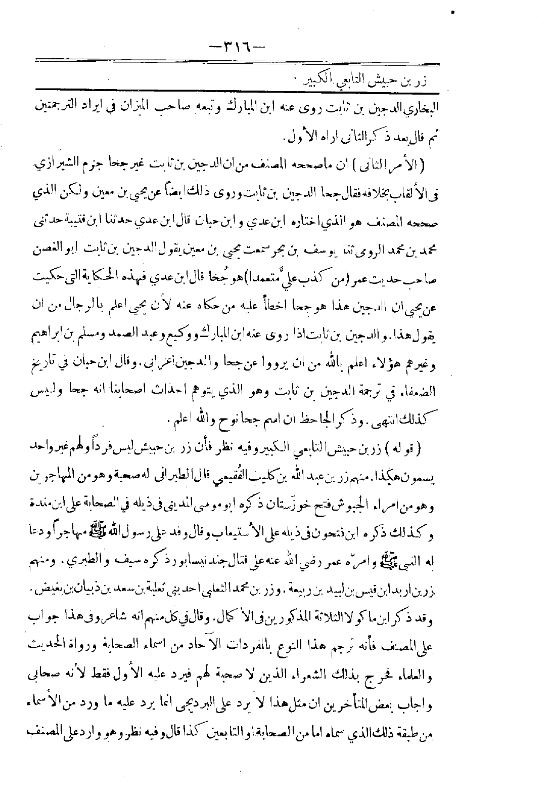وَمِنْ أَظْرَفِ ذَلِكَ رِوَايَةُ أَبِي الْفَرَجِ عَبْدِ الْوَهَّابِ التَّمِيمِيِّ الْفَقِيهِ الْحَنْبَلِيِّ، وَكَانَتْ لَهُ بِبَغْدَادَ فِي جَامِعِ الْمَنْصُورِ حَلَقَةٌ لِلْوَعْظِ وَالْفَتْوَى، عَنْ أَبِيهِ، فِي تِسْعَةٍ مِنْ آبَائِهِ نَسَقًا، أَخْبَرَنِي بِذَلِكَ الشَّيْخُ أَبُو الْحَسَنِ مُؤَيَّدُ بْنُ مُحَمَّدِ بْنِ عَلِيٍّ النَّيْسَابُورِيُّ بِقِرَاءَتِي عَلَيْهِ بِهَا، قَالَ: أَخْبَرَنَا أَبُو مَنْصُورٍ عَبْدُ الرَّحْمَنِ بْنُ مُحَمَّدٍ الشَّيْبَانِيُّ فِي كِتَابِهِ إِلَيْنَا، قَالَ: أَخْبَرَنَا الْحَافِظُ أَبُو بَكْرٍ أَحْمَدُ بْنُ عَلِيٍّ، حَدَّثَنَا عَبْدُ الْوَهَّابِ بْنُ عَبْدِ الْعَزِيزِ بْنِ الْحَارِثِ بْنِ أَسَدِ بْنِ اللَّيْثِ بْنِ سُلَيْمَانَ بْنِ الْأَسْوَدِ بْنِ سُفْيَانَ بْنِ يَزِيدَ بْنِ أُكَيْنَةَ بْنِ عَبْدِ اللَّهِ التَّمِيمِيُّ مِنْ لَفْظِهِ قَالَ: سَمِعْتُ أَبِي يَقُولُ: سَمِعْتُ أَبِي يَقُولُ: سَمِعْتُ أَبِي يَقُولُ: سَمِعْتُ أَبِي يَقُولُ: سَمِعْتُ أَبِي يَقُولُ: سَمِعْتُ أَبِي يَقُولُ: سَمِعْتُ أَبِي يَقُولُ: سَمِعْتُ أَبِي يَقُولُ: سَمِعْتُ أَبِي يَقُولُ: ... سَمِعْتُ عَلِيَّ بْنَ أَبِي طَالِبٍ وَقَدْ سُئِلَ عَنِ الْحَنَّانِ الْمَنَّانِ، فَقَالَ: الْحَنَّانُ الَّذِي يُقْبِلُ عَلَى مَنْ أَعْرَضَ عَنْهُ، وَالْمَنَّانُ الَّذِي يَبْدَأُ بِالنَّوَالِ قَبْلَ السُّؤَالِ ... .