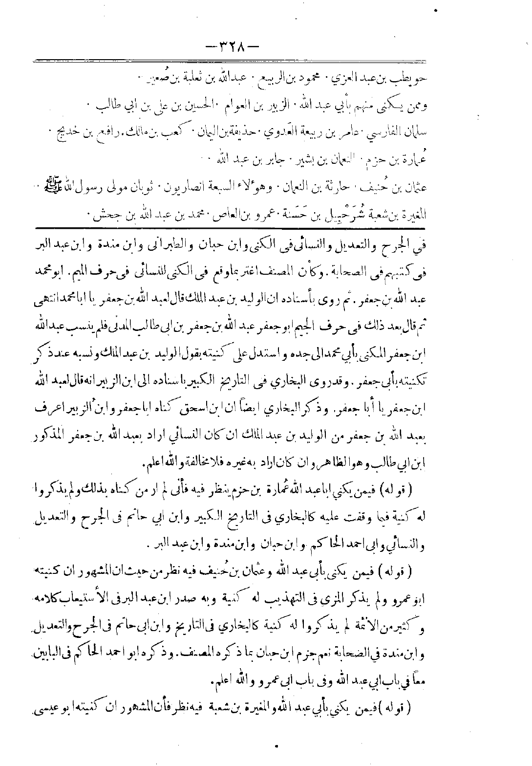 وَأَمَّا الْكُنَى الْمُفْرَدَةِ، فَمِنْهَا: أَبُو الْعُبَيْدَيْنِ، مُصَغَّرٌ مُثَنًّى، وَاسْمُهُ مُعَاوِيَةُ بْنُ سَبْرَةَ، مِنْ أَصْحَابِ ابْنِ مَسْعُودٍ، لَهُ حَدِيثَانِ أَوْ ثَلَاثَةٌ.