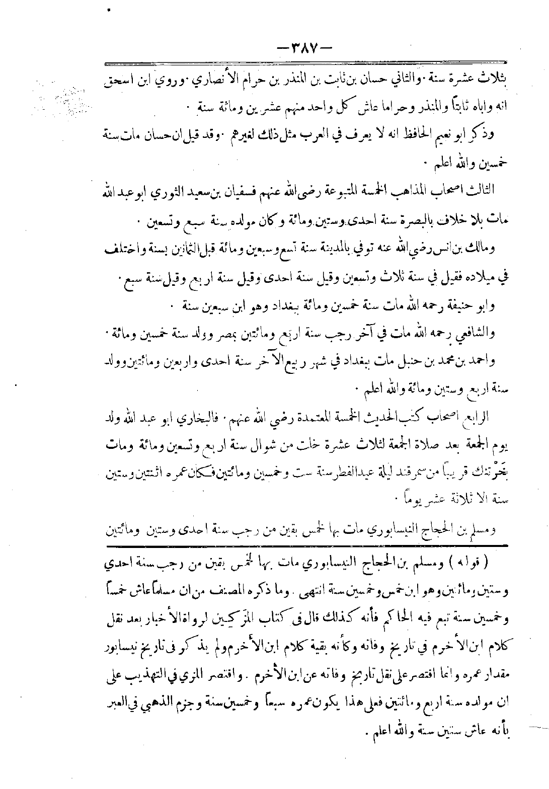 ثُمَّ أَبُو بَكْرٍ أَحْمَدُ بْنُ الْحُسَيْنِ الْبَيْهَقِيُّ: وُلِدَ سَنَةَ أَرْبَعٍ وَثَمَانِينَ وَثَلَاثِمِائَةٍ، وَمَاتَ بِنَيْسَابُورَ فِي جُمَادَى الْأُولَى سَنَةَ ثَمَانٍ وَخَمْسِينَ وَأَرْبَعِمِائَةٍ، وَنُقِلَ إِلَى بَيْهَقَ فَدُفِنَ بِهَا.
