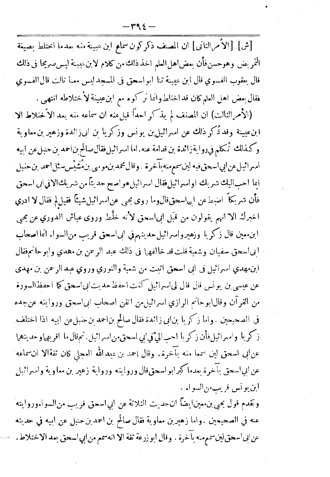 وَذَكَرَ حَنْبَلُ بْنُ إِسْحَاقَ عَنْ أَحْمَدَ بْنِ حَنْبَلٍ أَنَّهُ قَالَ: " سَمَاعُ عَاصِمٍ - هُوَ ابْنُ عَلِيٍّ - وَأَبِي النَّضْرِ وَهَؤُلَاءِ مِنَ الْمَسْعُودِيِّ بَعْدَمَا اخْتَلَطَ ".