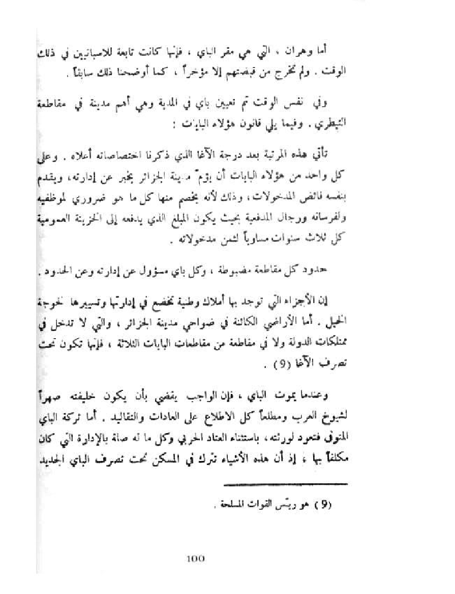 إن الأجزاء التي توجد بها أملاك وطنية تخضع في إدارتها وتسييرها لخوجة الخيل. أما الأراضي الكئنة في ضواحي مدينة الجزائر، والتي لا تدخل في ممتلكات الدولة ولا في مقاطعة من مقاطعان البايات الثلاثة، فإنها تكون تحت تصرف الآغا (¬9).