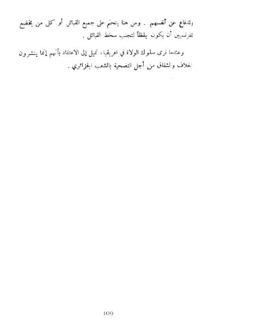 وللدفاع عن أنفسهم. ومن هنا يتحتم على جميع القبائل أو كل من يخضع للفرنسيين أن يكون يقظا لتجنب سخط القبائل.