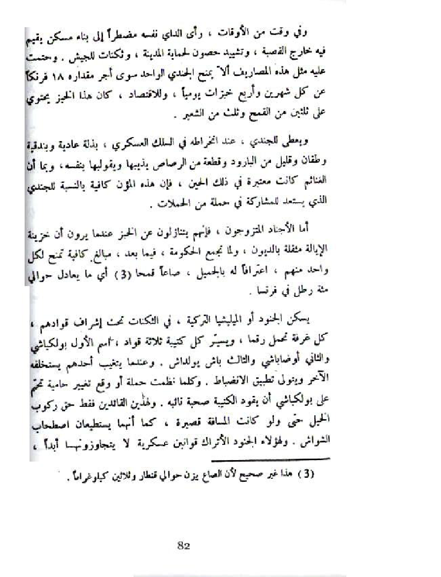 أما الأجناد المتزوجون، فإنهم يتنازلون عن الخبز عندما يرون أن خزينة الإيالة مثقلة بالديون، ولما تجمع الحكومة، فيما بعد، مبالغ كافية تمنح لكل واحد منهم، اعترافا له بالجميل، صاعا قمحا (¬3) أي ما يعادل حوالي مئة رطل في فرنسا.