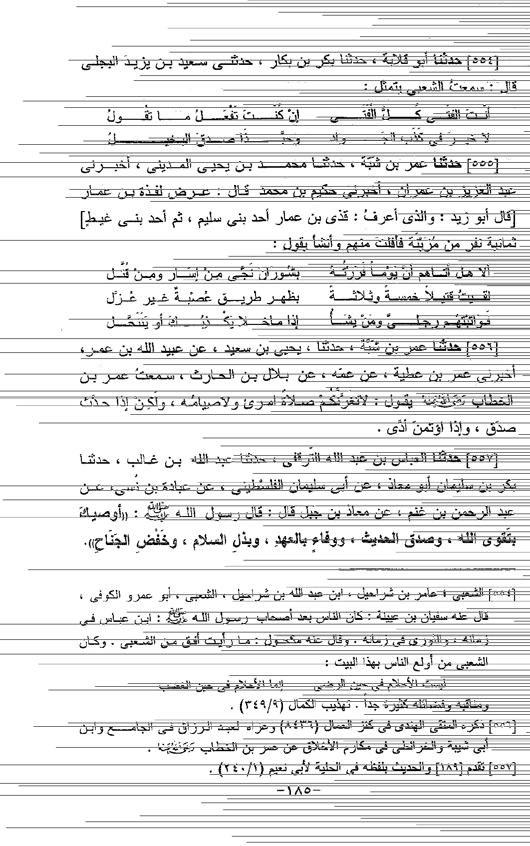554 - حَدَّثَنَا أَبُو قِلَابَةَ، حَدَّثَنَا بَكْرُ بْنُ بَكَّارٍ، حَدَّثَنِي سَعِيدُ بْنُ يَزِيدَ الْبَجَلِيُّ، قَالَ: سَمِعْتُ الشَّعْبِيَّ، يَتَمَثَّلُ: «