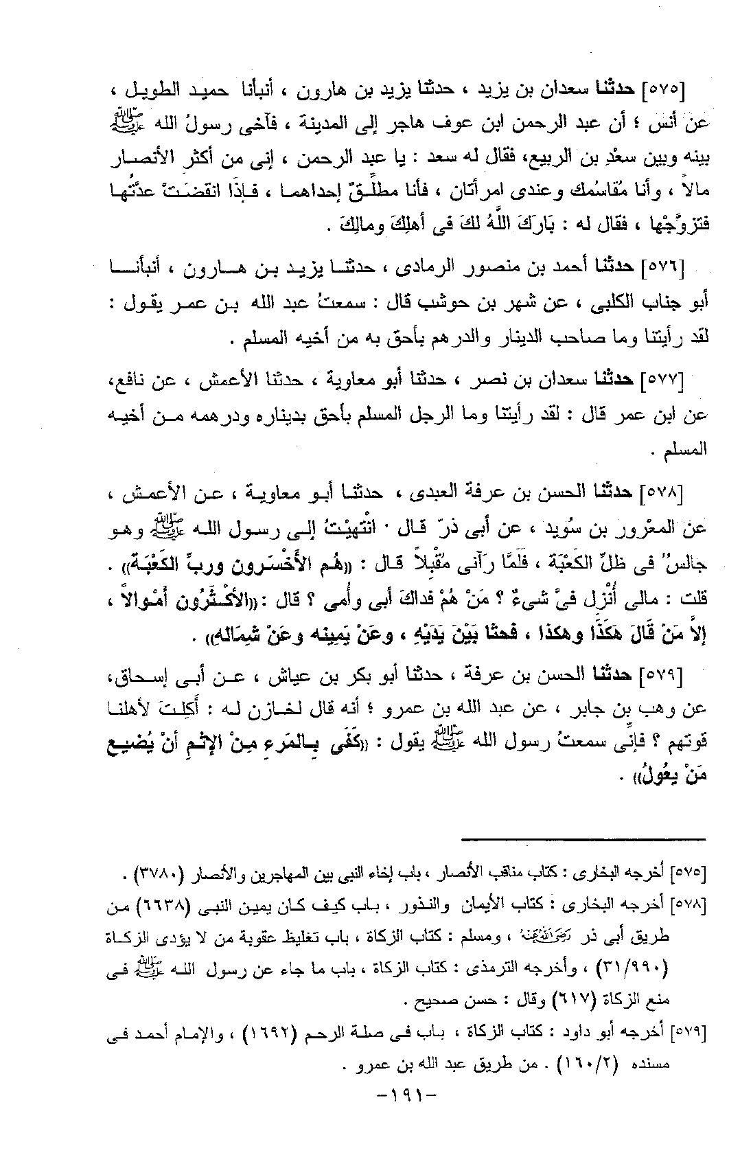 577 - حَدَّثَنَا سَعْدَانُ بْنُ نَصْرٍ، حَدَّثَنَا أَبُو مُعَاوِيَةَ، حَدَّثَنَا الْأَعْمَشُ، عَنْ نَافِعٍ، عَنِ ابْنِ عُمَرَ، قَالَ: «§لَقَدْ رَأَيْتُنَا وَمَا الرَّجُلُ الْمُسْلِمُ بِأَحَقَّ بِدِينَارِهِ وَدِرْهَمِهِ مِنْ أَخِيهِ الْمُسْلِمِ»