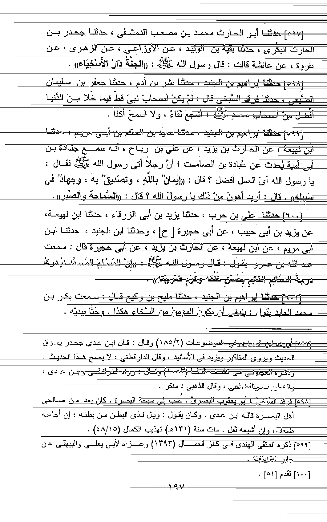 599 - حَدَّثَنَا إِبْرَاهِيمُ بْنُ الْجُنَيْدِ، حَدَّثَنَا سَعِيدُ بْنُ الْحَكَمِ بْنِ أَبِي مَرْيَمَ، حَدَّثَنَا ابْنُ لَهِيعَةَ، عَنِ الْحَارِثِ بْنِ يَزِيدَ، عَنْ عَلِيِّ بْنِ رَبَاحٍ، أَنَّهُ سَمِعَ جُنَادَةَ بْنَ أَبِي أُمَيَّةَ، يُحَدِّثُ عَنْ عُبَادَةَ بْنِ الصَّامِتِ، " أَنَّ §رَجُلًا أَتَى رَسُولَ اللَّهِ صَلَّى اللَّهُ عَلَيْهِ وَسَلَّمَ، فَقَالَ: يَا رَسُولَ اللَّهِ، أَيُّ الْعَمَلِ أَفْضَلُ؟ قَالَ: إِيمَانٌ بِاللَّهِ، وَتَصْدِيقٌ بِهِ، وَجِهَادٌ فِي سَبِيلِهِ قَالَ: أُرِيدُ أَهْوَنَ مِنْ ذَلِكَ يَا رَسُولَ اللَّهِ؟ قَالَ: السَّمَاحَةُ وَالصَّبْرُ "