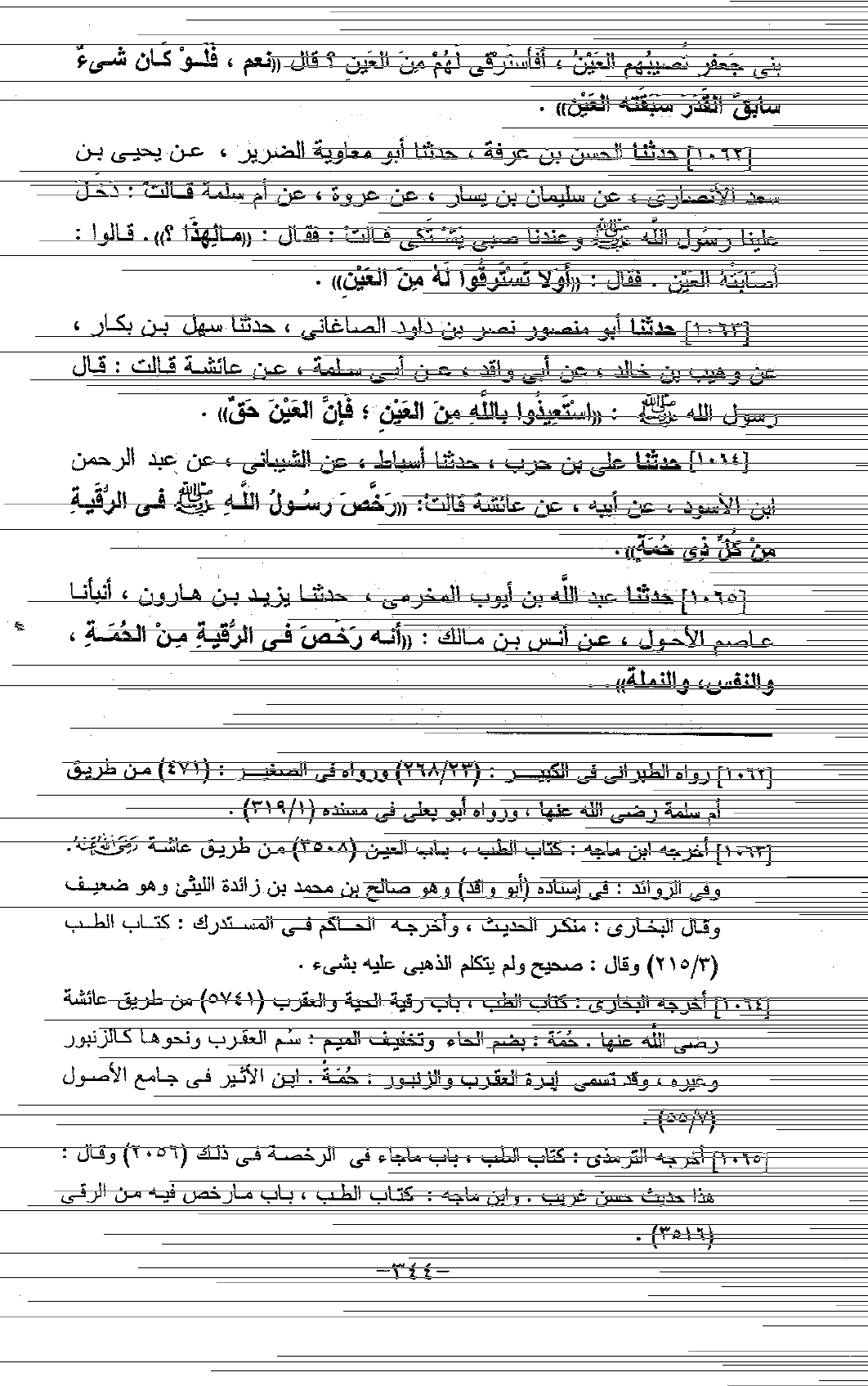 1062 - حَدَّثَنَا الْحَسَنُ بْنُ عَرَفَةَ، حَدَّثَنَا أَبُو مُعَاوِيَةَ الضَّرِيرُ، عَنْ يَحْيَى بْنِ سَعِيدٍ الْأَنْصَارِيُّ، عَنْ سُلَيْمَانَ بْنِ يَسَارٍ، عَنْ عُرْوَةَ، عَنْ أُمِّ سَلَمَةَ، قَالَتْ: " §دَخَلَ عَلَيْنَا رَسُولُ اللَّهِ صَلَّى اللَّهُ عَلَيْهِ وَسَلَّمَ، وَعِنْدَنَا صَبِيٌّ يَشْتَكِي، قَالَتْ: فَقَالَ: مَا لِهَذَا؟ قَالُوا: أَصَابَتْهُ الْعَيْنُ، فَقَالَ: أَوَلَا تَسْتَرْقُوا لَهُ مِنَ الْعَيْنِ "