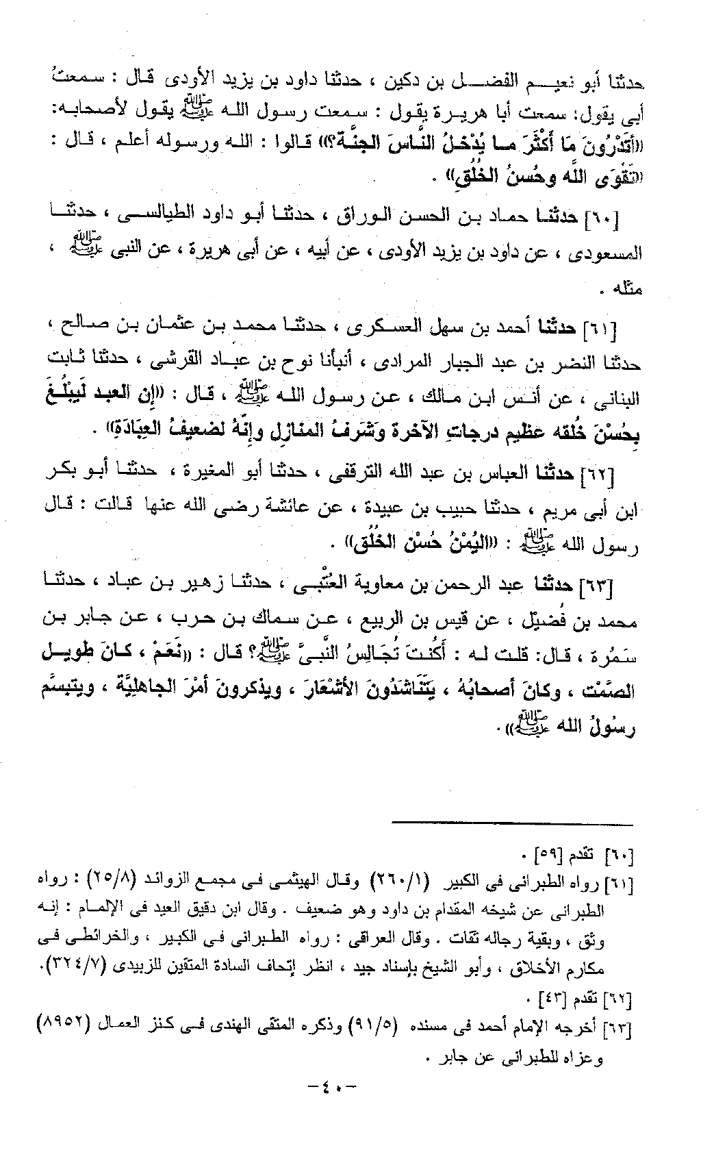 61 - حَدَّثَنَا أَحْمَدُ بْنُ سَهْلٍ الْعَسْكَرِيُّ، حَدَّثَنَا مُحَمَّدُ بْنُ عُثْمَانَ بْنِ صَالِحٍ، حَدَّثَنَا النَّضْرُ بْنُ عَبْدِ الْجَبَّارِ الْمُرَادِيُّ، أَنْبَأَنَا نُوحُ بْنُ عَبَّادٍ الْقُرَشِيُّ، حَدَّثَنَا ثَابِتٌ الْبُنَانِيُّ، عَنْ أَنَسِ بْنِ مَالِكٍ، عَنْ رَسُولِ اللَّهِ صَلَّى اللَّهُ عَلَيْهِ وَسَلَّمَ قَالَ: «إِنَّ §الْعَبْدَ لَيَبْلُغُ بِحُسْنِ خُلُقِهِ عَظِيمَ دَرَجَاتِ الْآخِرَةِ وَشَرَفَ الْمَنَازِلِ، وَإِنَّهُ لَضَعِيفُ الْعِبَادَةِ»