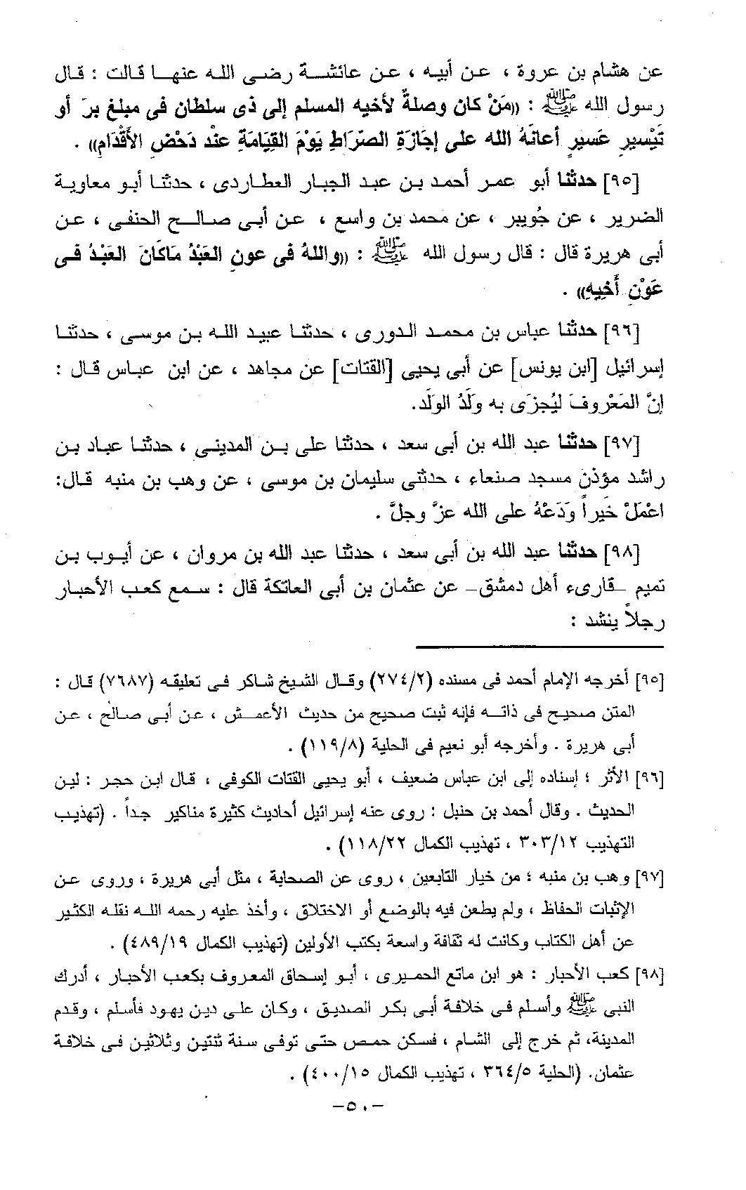 95 - حَدَّثَنَا أَبُو عُمَرَ أَحْمَدُ بْنُ عَبْدِ الْجَبَّارِ الْعُطَارِدِيُّ، حَدَّثَنَا أَبُو مُعَاوِيَةَ الضَّرِيرُ، عَنْ جُوَيْبِرٍ، عَنْ مُحَمَّدِ بْنِ وَاسِعٍ، عَنْ أَبِي صَالِحٍ الْحَنَفِيِّ، عَنْ أَبِي هُرَيْرَةَ، قَالَ: قَالَ رَسُولُ اللَّهِ صَلَّى اللَّهُ عَلَيْهِ وَسَلَّمَ: «§وَاللَّهُ فِي عَوْنِ الْعَبْدِ مَا كَانَ الْعَبْدُ فِي عَوْنِ أَخِيهِ»
