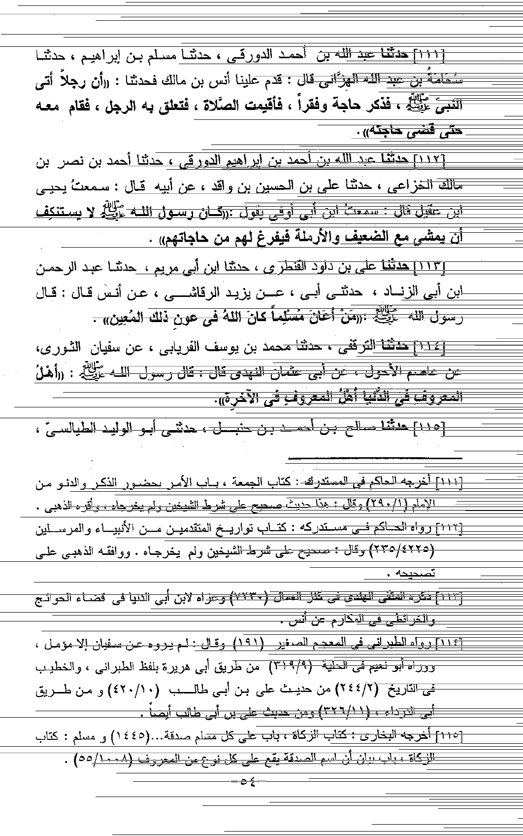 111 - حَدَّثَنَا عَبْدُ اللَّهِ بْنُ أَحْمَدَ الدَّوْرَقِيُّ، حَدَّثَنَا مُسْلِمُ بْنُ إِبْرَاهِيمَ، حَدَّثَنَا سُحَامَةُ بْنُ عَبْدِ اللَّهِ الْهِزَّانِيُّ، قَالَ: قَدِمَ عَلَيْنَا أَنَسُ بْنُ مَالِكٍ، فَحَدَّثَنَا «أَنَّ §رَجُلًا أَتَى النَّبِيَّ صَلَّى اللَّهُ عَلَيْهِ وَسَلَّمَ، فَذَكَرَ حَاجَةً وَفَقْرًا، فَأُقِيمَتِ الصَّلَاةُ، فَتَعَلَّقَ بِهِ الرَّجُلُ، فَقَامَ مَعَهُ حَتَّى قَضَى حَاجَتَهُ»