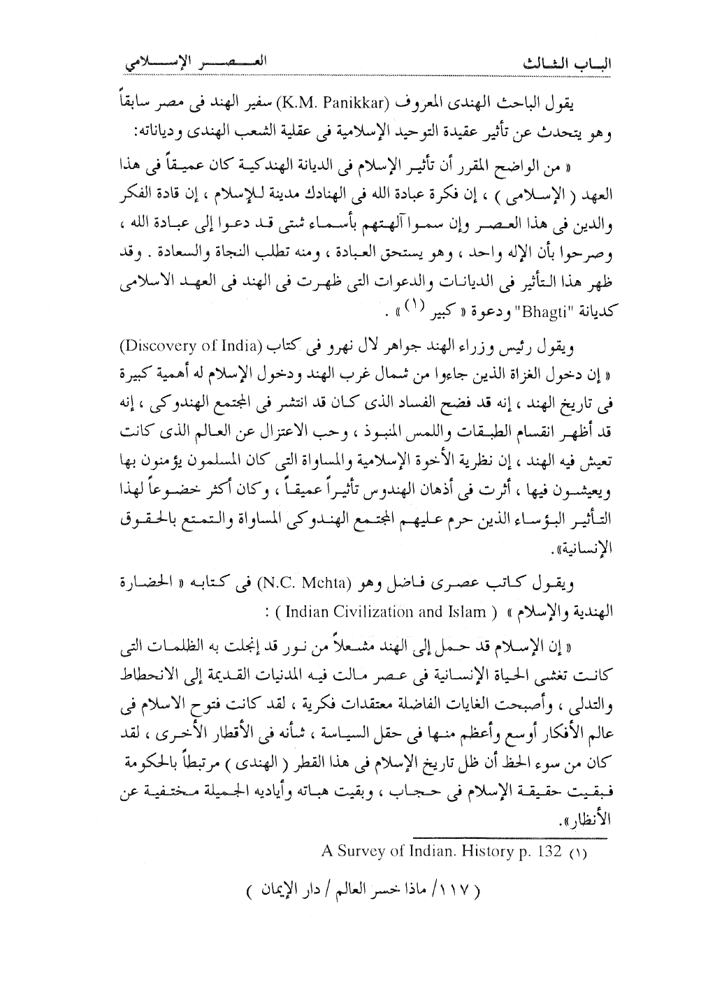 ويقول كاتب عصري فاضل وهو (N. C. Mehta) في كتابه " الحضارة الهندية والإسلام " (Indian Civilization and Islam) :