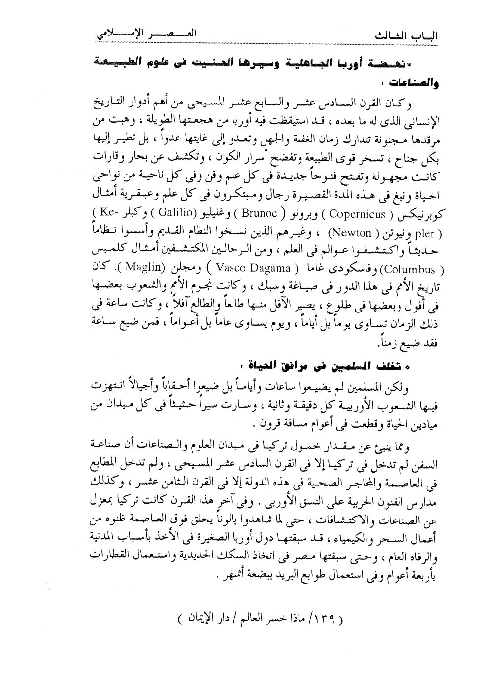 نهضة أوربا الجاهلية وسيرها الحثيث في علوم الطبيعة والصناعات: