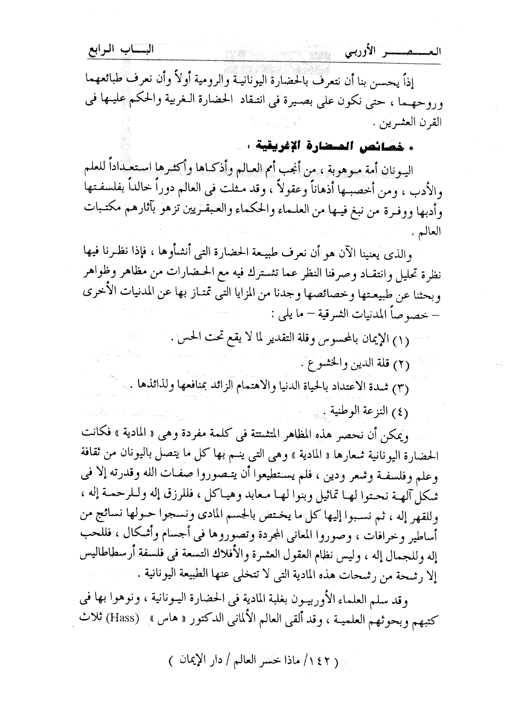 وقد سلم العلماء الأوربيون بغلبة المادية في الحضارة اليونانية، ونوهوا بها في كتبهم وبحوثهم العلمية، وقد ألقى العالم الألماني الدكتور ((هاس)) (Haas) ثلاث
