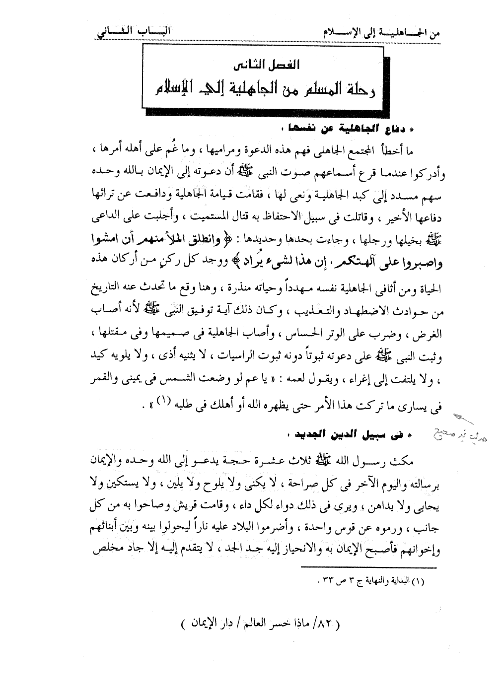 ما أخطأ المجتمع الجاهلي فهم هذه الدعوة ومراميها، وما غُمَّ على أهله أمرها، وأدركوا عندما قرع أسماعهم صوت النبي صلى الله عليه وسلم أن دعوته إلى الإيمان بالله وحده سهم مسدَّد إلى كبد الجاهلية ونعي لها، فقامت قيامة الجاهلية ودافعت عن تراثها دفاعها الأخير، وقاتلت في سبيل الاحتفاظ به قتال المستميت، وأجلبت على الداعي صلى الله عليه وسلم بخيلها ورجلها، وجاءت بحدها وحديدها: {وَانطَلَقَ الْمَلَأُ مِنْهُمْ أَنِ امْشُوا وَاصْبِرُوا عَلَى آلِهَتِكُمْ إِنَّ هَذَا لَشَيْءٌ يُرَادُ} ووجد كل ركنٍ من أركان هذه الحياة ومن أثافي الجاهلية نفسه مهدداً وحياته منذرة، وهنا وقع ما تحدث عنه التاريخ من حوادث الاضطهاد والتعذيب، وكان ذلك آية توفيق النبي صلى الله عليه وسلم لأنه أصاب الغرض، وضرب على الوتر الحساس، وأصاب الجاهلية في صميمها وفي مقتلها، وثبت النبي صلى الله عليه وسلم على دعوته ثبوتاً دونه ثبوت الراسيات، لا يثنيه أذى، ولا يلويه كيد، ولا يلتفت إلى إغراء، ويقول لعمه: ((يا عم لو وضعت الشمس في يميني والقمر في يساري ما تركت هذا الأمر حتى يظهره الله أو أهلك في طلبه (¬1)) .