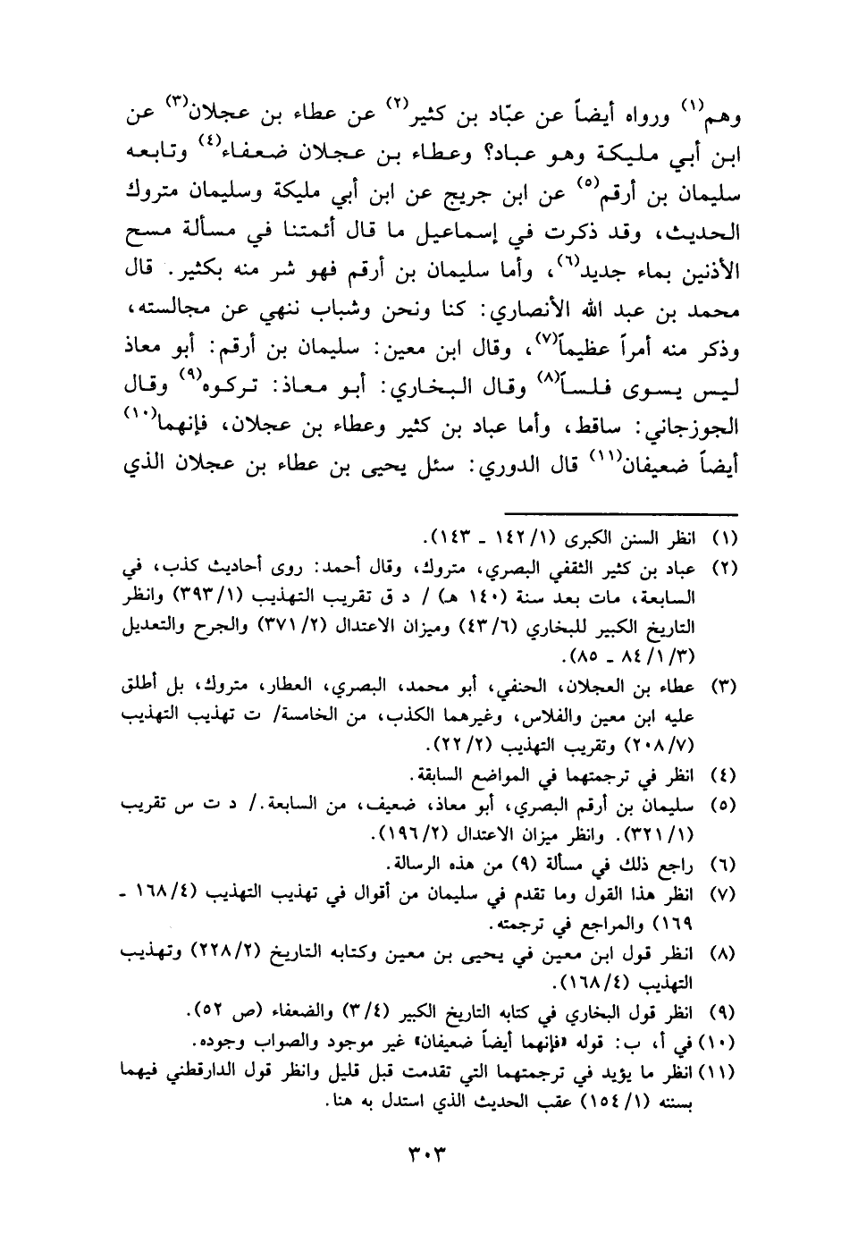 وهم وَرَوَاهُ أَيْضا عَن عباد بن كثير عَن عَطاء بن عجلَان عَن ابْن أبي مليكَة وَهُوَ عباد؟ وَعَطَاء بن عجلَان ضعفاء وَتَابعه سُلَيْمَان بن أَرقم عَن ابْن جريج عَن ابْن أبي مليكَة وَسليمَان مَتْرُوك الحَدِيث، وَقد ذكرت فِي إِسْمَاعِيل مَا قَالَ أَئِمَّتنَا فِي مَسْأَلَة مسح الْأُذُنَيْنِ بِمَاء جَدِيد، وَأما سُلَيْمَان بن أَرقم فَهُوَ شَرّ مِنْهُ بِكَثِير. قَالَ مُحَمَّد بن عبد الله الْأنْصَارِيّ: كُنَّا وَنحن وشباب ننهي عَن مُجَالَسَته، وَذكر مِنْهُ أمرا عَظِيما، وَقَالَ ابْن معِين: سُلَيْمَان بن أَرقم: أَبُو معَاذ لَيْسَ يسوى فلسًا وَقَالَ البُخَارِيّ: أَبُو معَاذ: تَرَكُوهُ وَقَالَ الْجوزجَاني: سَاقِط، وَأما عباد بن كثير وَعَطَاء بن عجلَان، فَإِنَّهُمَا أَيْضا ضعيفان قَالَ الدوري: سُئِلَ يحيى بن عَطاء بن عجلَان الَّذِي