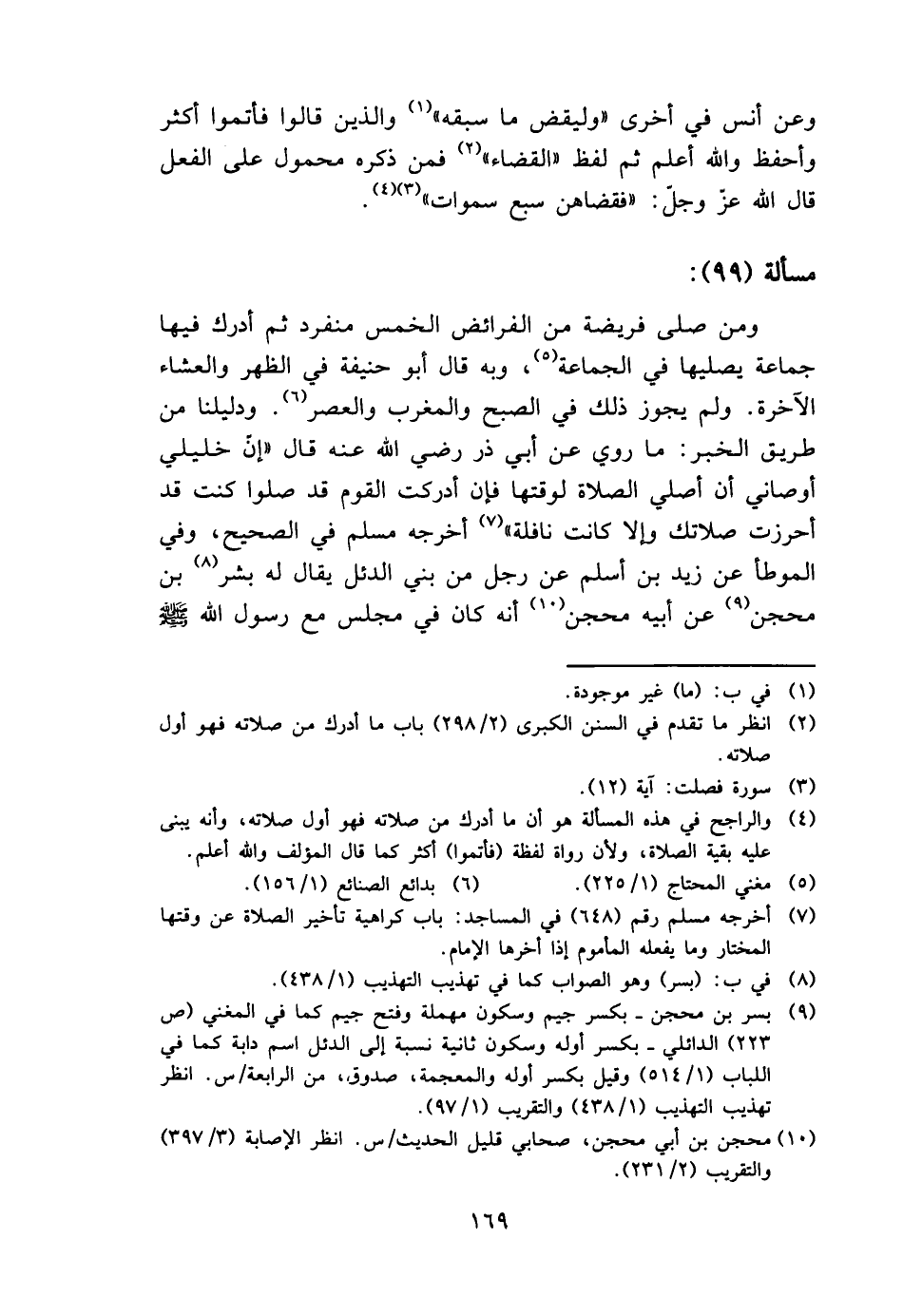 وَعَن أنس فِي أُخْرَى " وليقض مَا سبقه " وَالَّذين قَالُوا فَأتمُّوا أَكثر وأحفظ وَالله أعلم ثمَّ لفظ " الْقَضَاء " فَمن ذكره مَحْمُول على الْفِعْل قَالَ الله عز وَجل: " فقضاهن سبع سموات ".