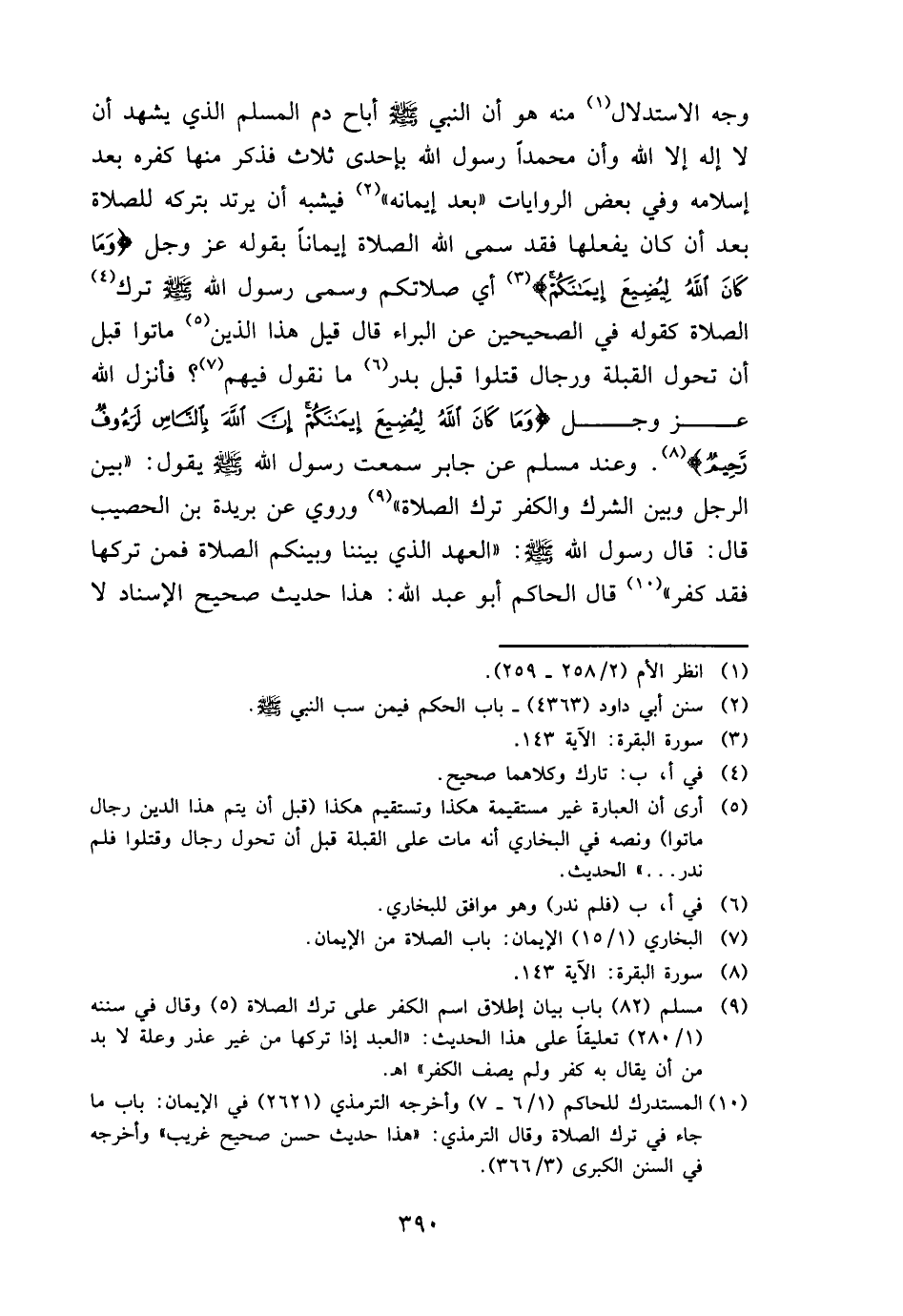 وَجه الِاسْتِدْلَال مِنْهُ هُوَ أَن النَّبِي - صَلَّى اللَّهُ عَلَيْهِ وَسَلَّم َ - أَبَاحَ دم الْمُسلم الَّذِي يشْهد أَن لَا إِلَه إِلَّا الله وَأَن مُحَمَّدًا رَسُول الله بِإِحْدَى ثَلَاث فَذكر مِنْهَا كفره بعد إِسْلَامه وَفِي بعض الرِّوَايَات " بعد إيمَانه " فَيُشبه أَن يرْتَد بِتَرْكِهِ للصَّلَاة بعد أَن كَانَ يَفْعَلهَا فقد سمى الله الصَّلَاة إِيمَانًا بقوله عز وَجل {وَمَا كَانَ الله لِيُضيع إيمَانكُمْ} أَي صَلَاتكُمْ وسمى رَسُول الله - صَلَّى اللَّهُ عَلَيْهِ وَسَلَّم َ - ترك الصَّلَاة كَقَوْلِه فِي الصَّحِيحَيْنِ عَن الْبَراء قَالَ قيل هَذَا الَّذين مَاتُوا قبل أَن تحول الْقبْلَة وَرِجَال قتلوا قبل بدر مَا نقُول فيهم؟ فَأنْزل الله عز وَجل {وَمَا كَانَ الله لِيُضيع إيمَانكُمْ إِن الله بِالنَّاسِ لرءوف رَحِيم} . وَعند مُسلم عَن جَابر سَمِعت رَسُول الله - صَلَّى اللَّهُ عَلَيْهِ وَسَلَّم َ - يَقُول: " بَين الرجل وَبَين الشّرك وَالْكفْر ترك الصَّلَاة " وَرُوِيَ عَن بُرَيْدَة بن الْحصيب قَالَ: قَالَ رَسُول الله - صَلَّى اللَّهُ عَلَيْهِ وَسَلَّم َ -: " الْعَهْد الَّذِي بَيْننَا وَبَيْنكُم الصَّلَاة فَمن تَركهَا فقد كفر " قَالَ الْحَاكِم أَبُو عبد الله: هَذَا حَدِيث صَحِيح الْإِسْنَاد لَا